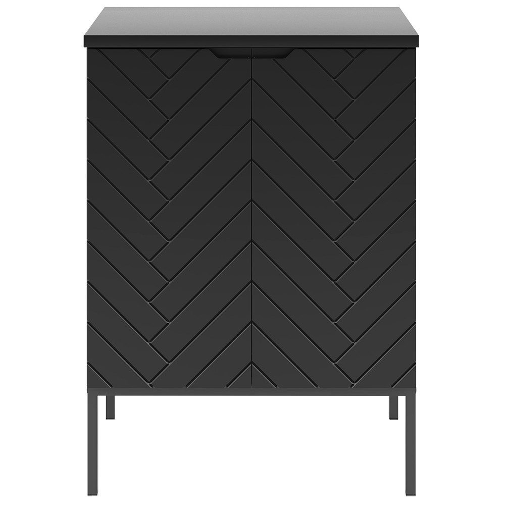 Dieser Waschbeckenunterschrank in edlem schwarz matt bringt eine moderne und stilvolle Atmosphäre in dein Badezimmer. Die grifflosen Türen betonen das minimalistische Design und die matte Oberfläche des Schranks sorgt für eine elegante, zeitlose Ausstrahlung.