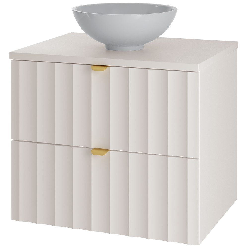Verleihe deinem Badezimmer ein stilvolles Update mit unserer modernen Badezimmermöbelserie. Die eleganten, gewellten Fronten in Mattweiß verleihen dem Raum einen Hauch von Luxus und lassen ihn neu erstrahlen. Die goldfarbenen Griffe sorgen zusätzlich für ein edles Design. Dank der Softclose-Funktion schließen die Schubladen sanft und leise – ideal für den täglichen Gebrauch. Diese Möbel bieten nicht nur praktischen Stauraum, sondern machen dein Badezimmer zu einer echten Wohlfühloase.