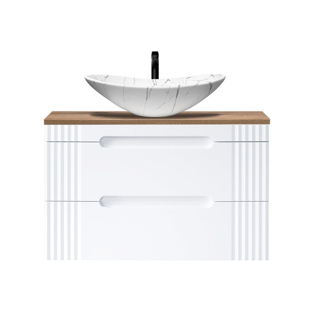 Das moderne Design des Waschtisch-Unterschranks wird durch die seitlichen Rillen perfekt abgerundet. Dieses Detail verleiht deinem Raum eine besondere Note und macht den Unterschrank zu einem echten Hingucker.