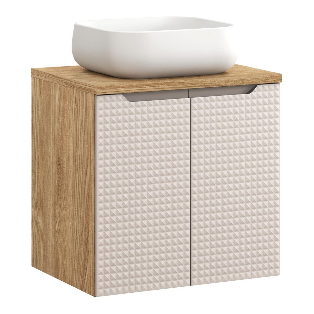 Erlebe unsere elegante Badmöbelserie, die durchdachtes Design und praktischen Komfort in deinem Badezimmer vereint. Die rustikale Eiche kombiniert mit den grifflosen, hellen Fronten der Schränke schafft einen ansprechenden Kontrast. Всі Elemente sind mit Softclose-Türen und -Schubladen ausgestattet, die für eine leise und sanfte Handhabung sorgen.