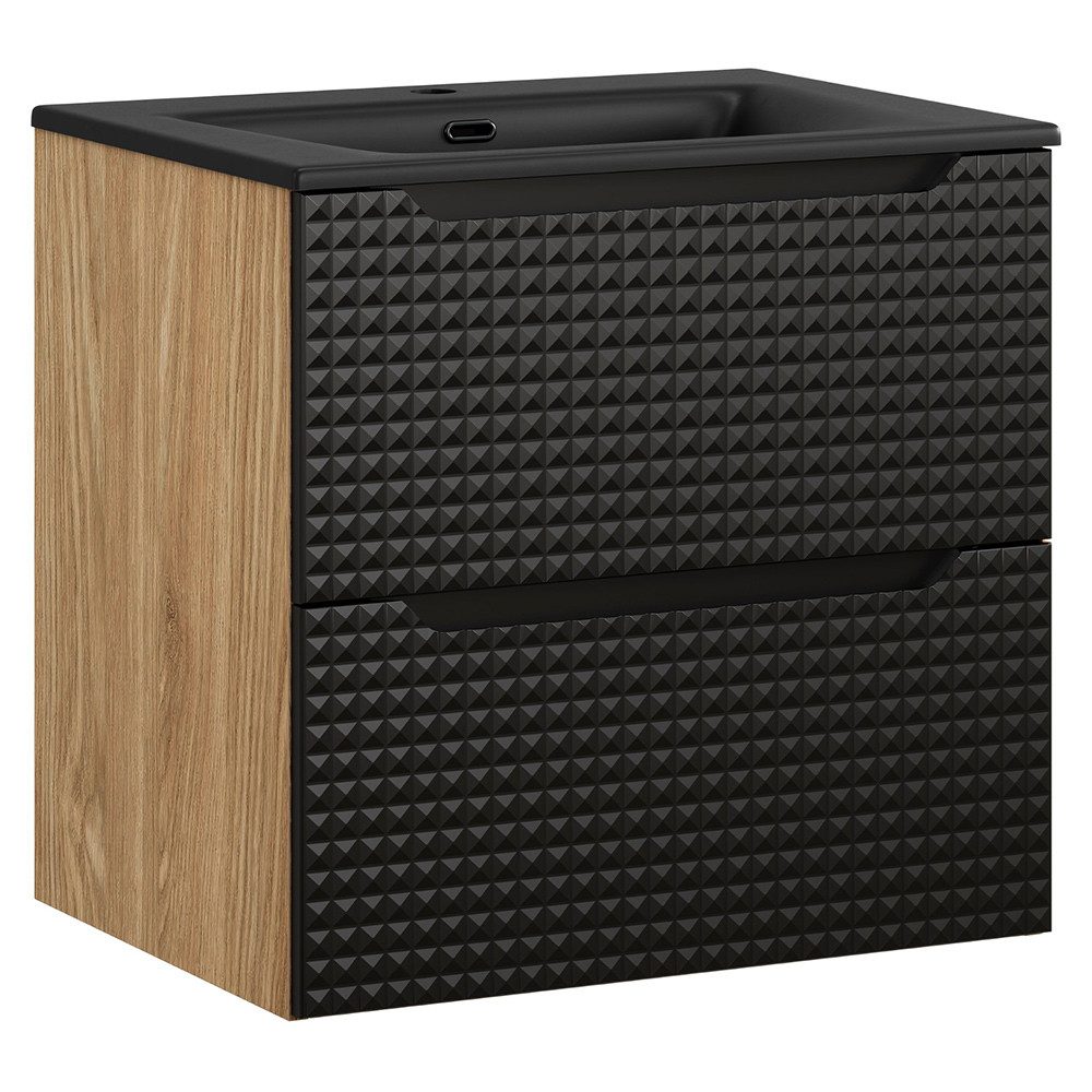 Erlebe unsere elegante Badmöbelserie, die durchdachtes Design und praktischen Komfort in deinem Badezimmer vereint. Die rustikale Eiche kombiniert mit den grifflosen, dunklen Fronten der Schränke schafft einen ansprechenden Kontrast. Всі Elemente sind mit Softclose-Türen und -Schubladen ausgestattet, die für eine leise und sanfte Handhabung sorgen.