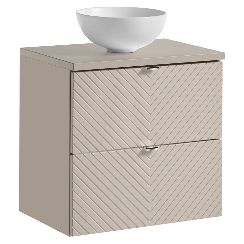 Der Waschtisch in kaschmir mit Aufsatzwaschbecken vereint modernes Design mit praktischer Funktionalität.