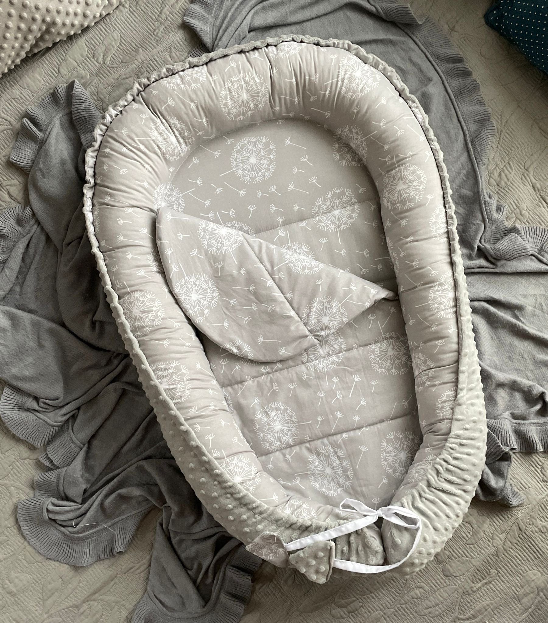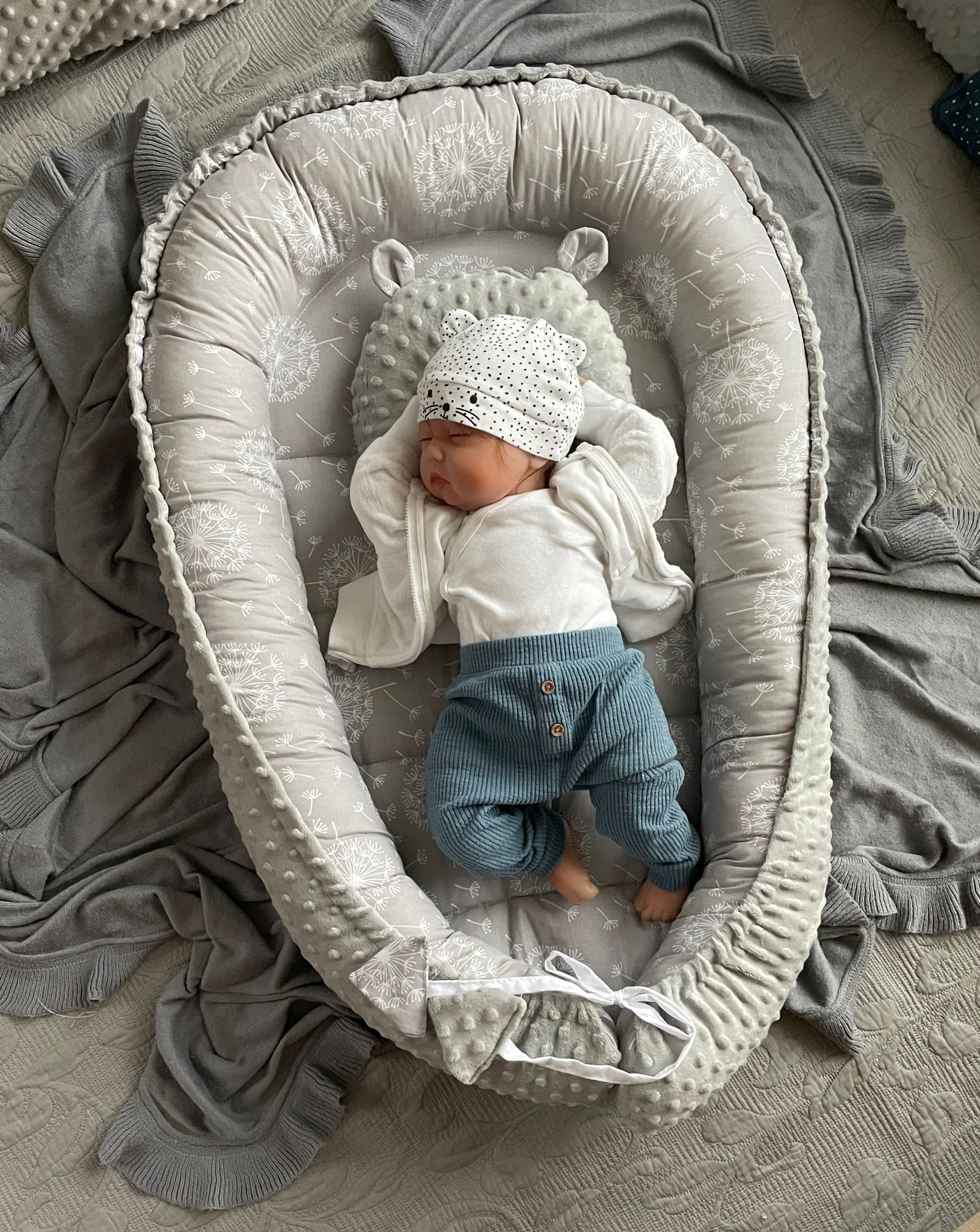 Das Nestchen ist ein Mehrzweck-Kokon, als sicherer Schlafplatz im Elternbett, im Kinderbett, auf dem Sofa oder auf einem geeigneten Boden oder als Spielmatte und Wickelmatte. Mann kann er zum Beispiel in eine Ferienreise oder zum Besuch bei den Freunden/Familie mitnehmen. Das Nestchen gibt dem Baby trotz Änderung der Umgebung das Sicherheitsgefühl.