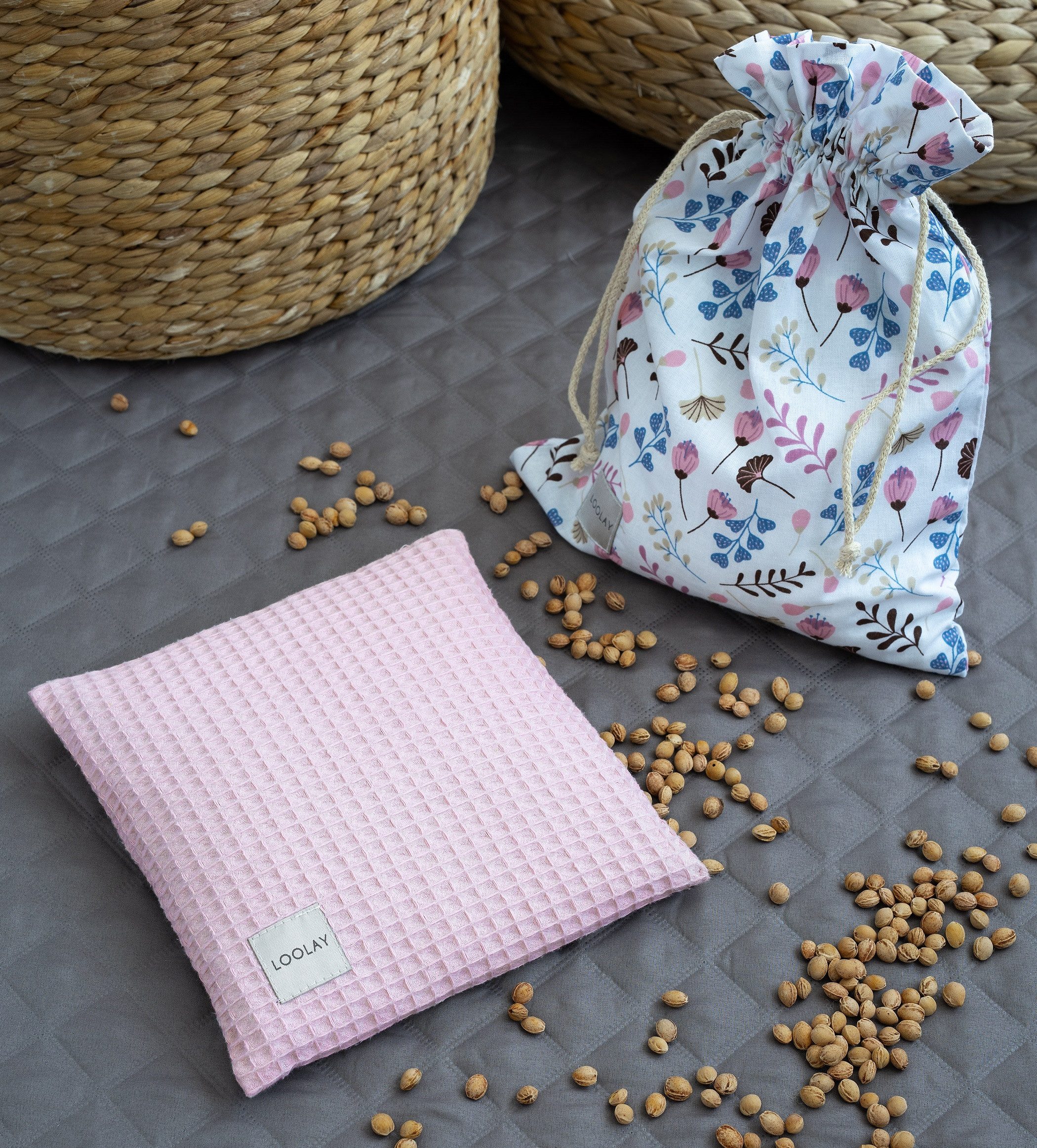 Pflegehinweise | - WAFFELPIQUE BEZUG kann man waschen (30-40 Grad C.) und bügeln (bis 110 Grad C.) - Baumwollfüllung mit Kirschkernen - NICHT WASCHEN! |