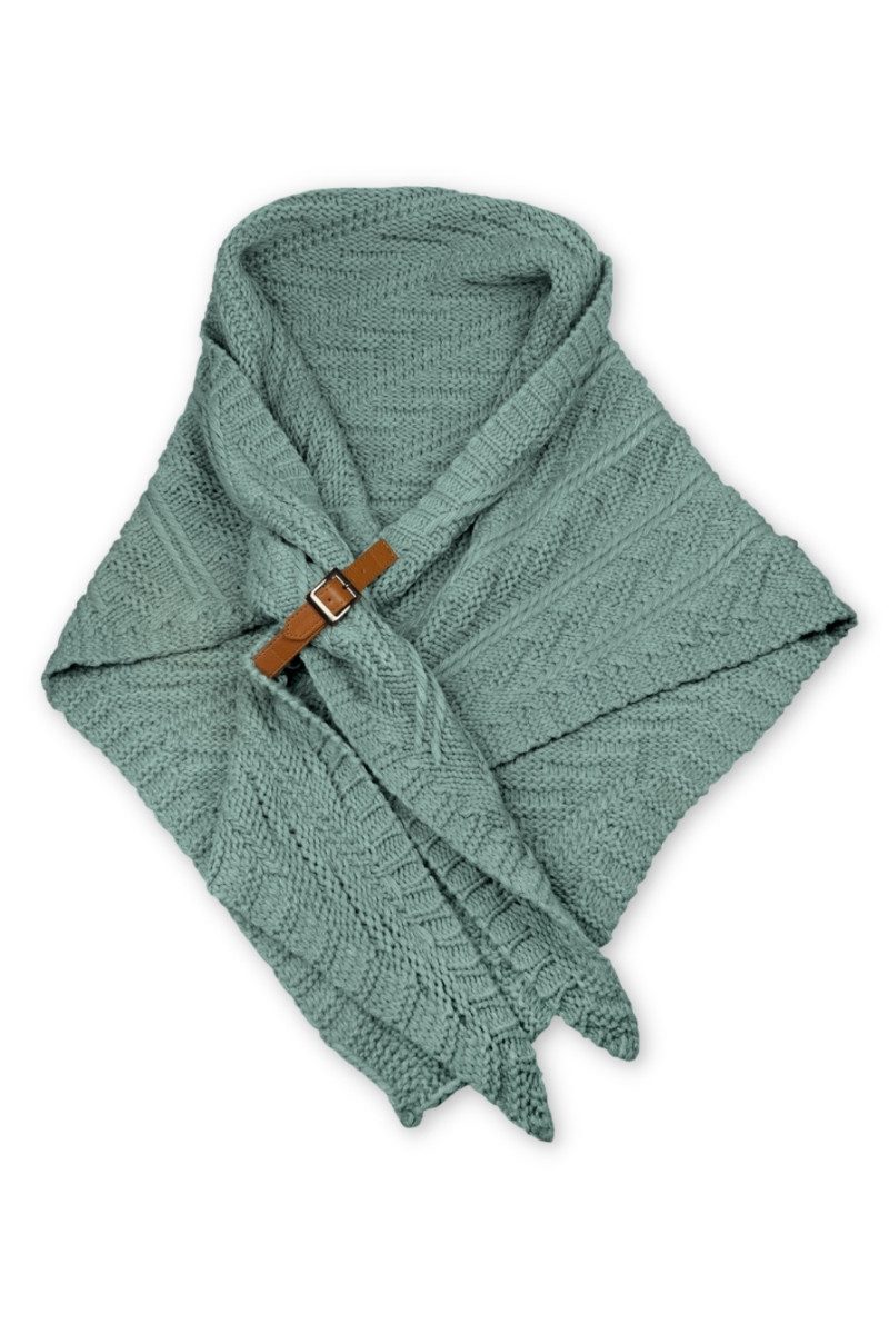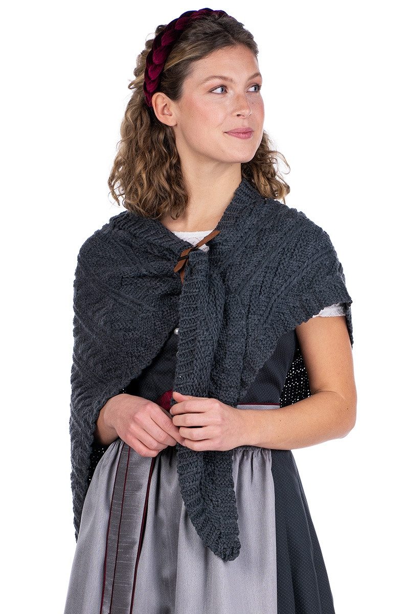 Dieses kuschelweiche, dreieckige Trachtentuch "Fleur" in Anthrazit bzw. Old Mint wird mit Viskose und Stretch-Anteil gefertigt und hat ein schönes Strickmuster im geometrischen Design. Das größenteils Rechtsstrick-Muster wird durch leicht erhabene Doppellinien im Kordel-Stil sowie schmalen Rechtecken in Linksstrick-Optik dazwischen akzentuiert, der Rand ist breit gerippt. Links an der langen Seite befindet sich ein brauner Riemen im Leder-Style mit einem Markenlogo-Prägemotiv auf beiden Seiten und einer kleinen anthrazit-glänzenden Dornschnalle als Befestigungsmöglichkeit. Das herrlich flauschige Dreieckstuch lässt sich fantastisch zum Dirndl und sonstigen Trachten-Outfits kombinieren.