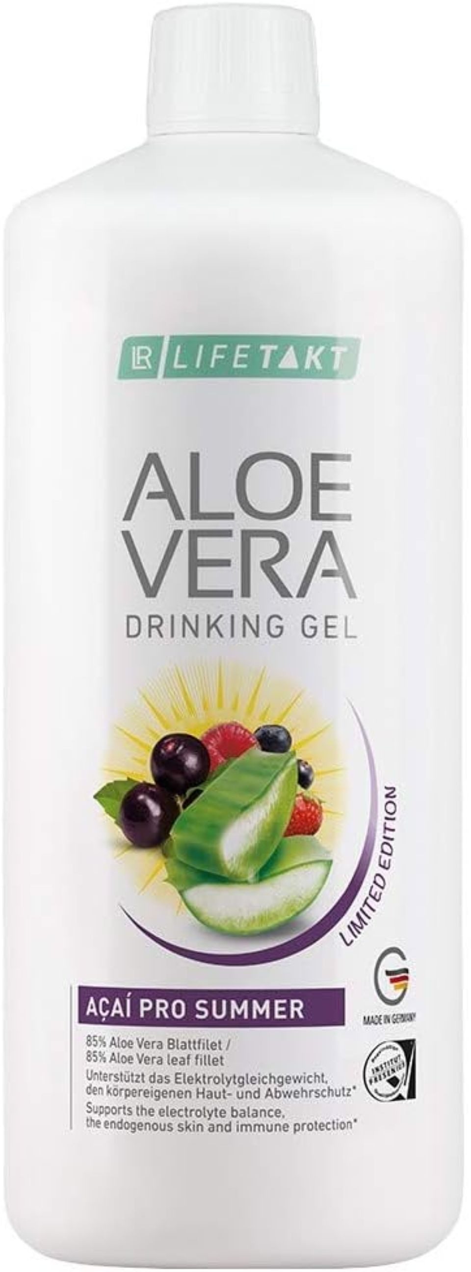 Zusatzstoffe | Aloe Vera (Barbadensis Miller) Gel (85 %), Blütenhonig, Açaísaft (Euterpe oleracea) (2,5 %), Trimagnesiumdicitrat, schwarzes Johannisbeersaftkonzentrat (Ribes nigrum) (1,4 %), Erdbeersaftkonzentrat (Fragaria x ananassa) (0,3 %), Säuerungsmittel (Citronensäure), Vitamin C (L-Ascorbinsäure), Heidelbeersaftkonzentrat2 (Vaccinium myrtillus) (0,2 %), Himbeersaftkonzentrat (Rubus idaeus) (0,2 %), Stabilisator (Xanthan), Konservierungsstoff (Kaliumsorbat), Zinkcitrat-3-hydrat, Kupfergluconat. |
