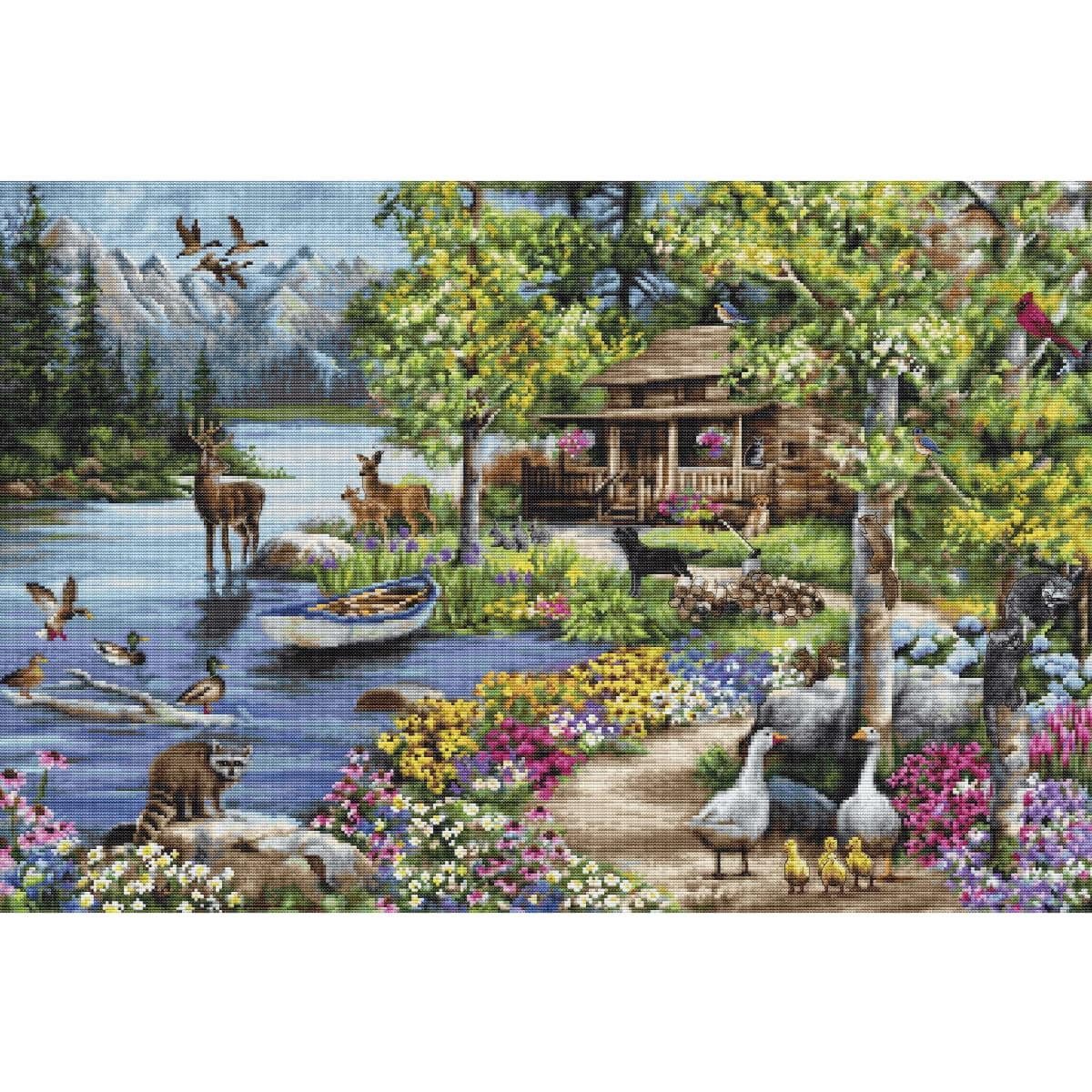 Luca-S Kreuzstich Set mit Zählmuster "Gold Collection Hütte am See"