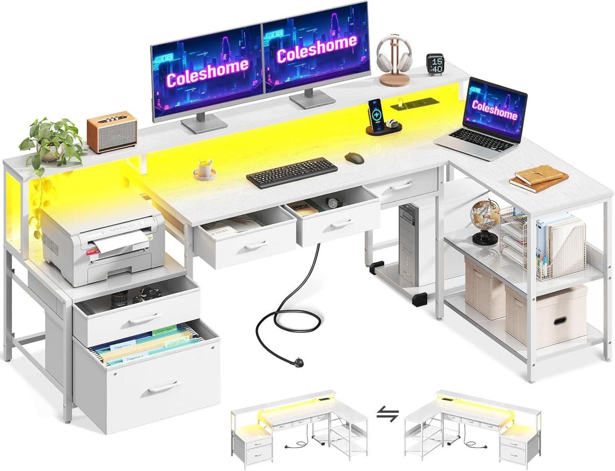 Der Coleshome Schreibtisch L Form mit Schubladen ist die perfekte Kombination aus Funktionalität und Stil. Mit einem gesundheitsfreundlichen Monitor Stand Design, das den Druck auf Rücken und Nacken reduziert, und einem reversiblen L-förmigen Design für maximale Raumausnutzung, ist dieser Schreibtisch ideal für Büro- und Gaming-Aktivitäten.