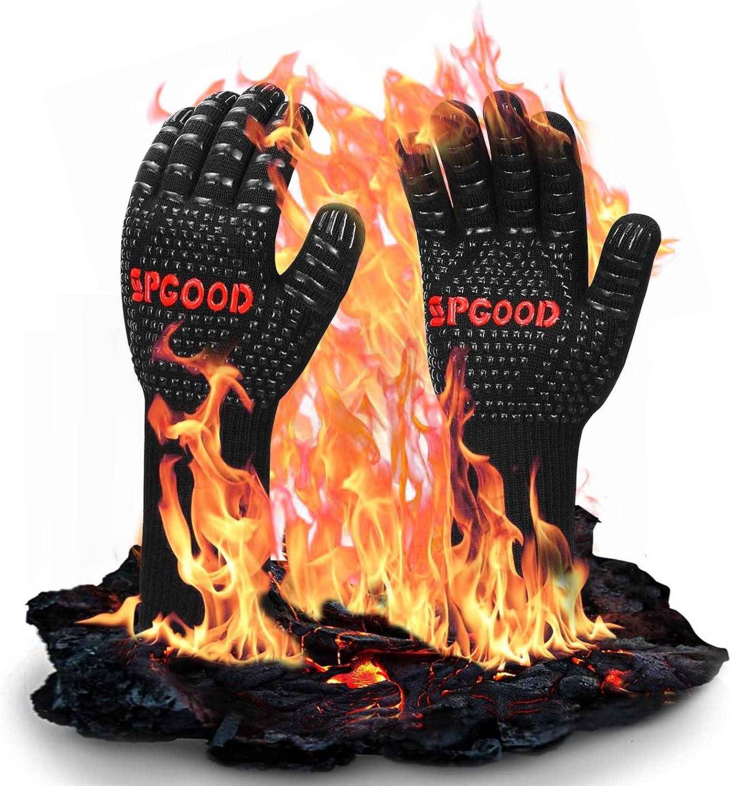Die SPGOOD Grillhandschuhe sind die perfekte Lösung, um Ihre Hände vor extremer Hitze zu schützen. Diese hitzebeständigen Handschuhe sind vielseitig einsetzbar und eignen sich ideal für die Verwendung in der Küche, beim Grillen, BBQ, im Ofen und vielem mehr. Sie ersetzen problemlos Backhandschuhe, Topflappen und Ofenhandschuhe, da sie aus hochdichtem Aramid-Gewebe hergestellt sind, das bis zu 800 Grad standhält.