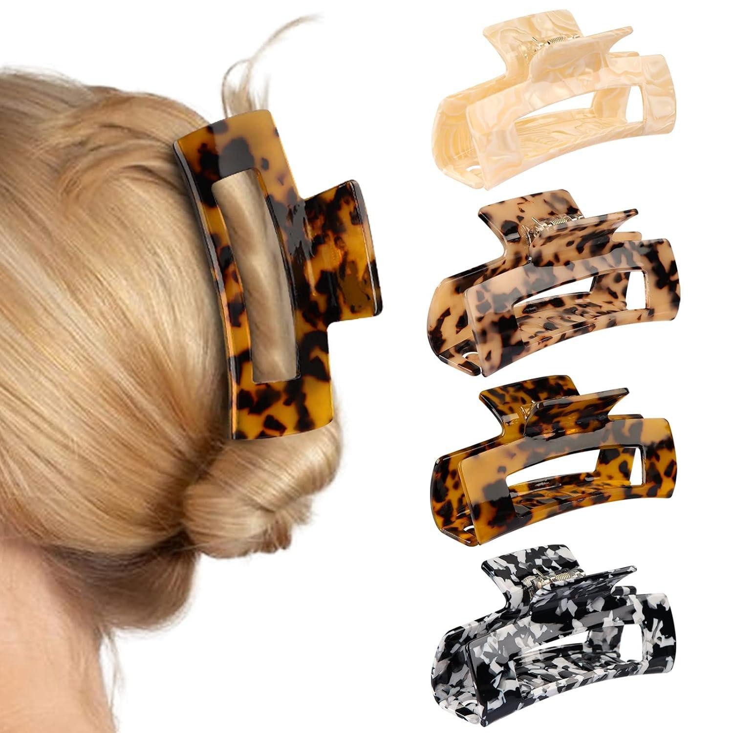 Die Kiefer Clips werden in 4 verschiedenen Farben geliefert - Khaki, Braun, Schwarz und Weiß, was es einfach macht, sie mit Ihren Outfits und Haarfarben abzustimmen. Jede Packung enthält 4 Haarklammern mit einem eleganten Schildpatt-Muster, das einen Hauch von Luxus verleiht.