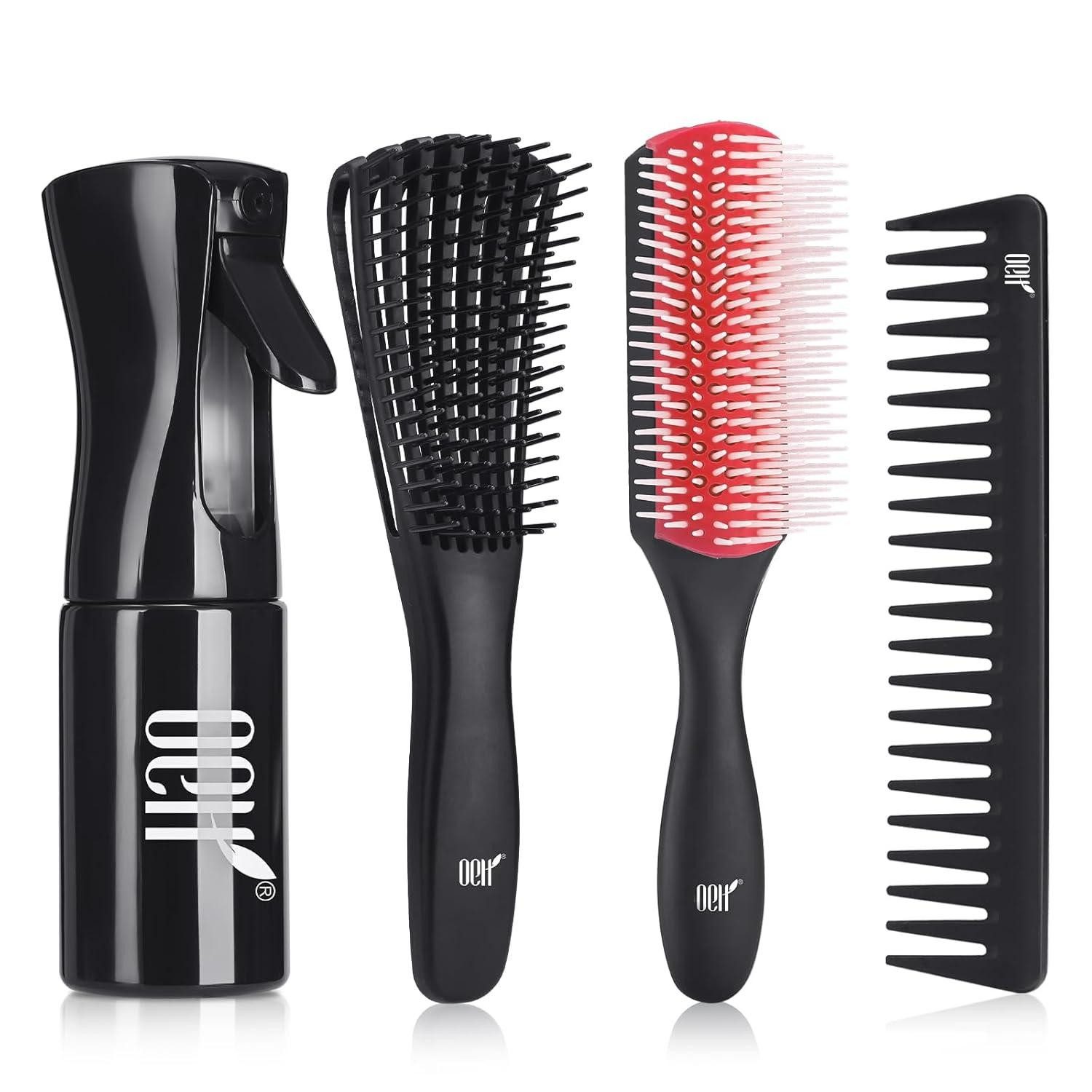 Kaufen Sie mit Vertrauen: Für alle OEH-Artikel gilt 2 Monate kostenlose Rückgabe, Rückerstattung oder Ersatz. Wir bemühen uns, die besten Haarbürsten und -dienste anzubieten. Die Entwirrungsbürste verfügt über flexible, freie Kammarme mit weichen Nylonborsten, die Verfilzungen und Knoten mühelos entwirren, minimale Schäden verursachen und das Entwirren vereinfachen. Die klassische 9-reihige Bürste bietet neun Reihen von Nylonborsten mit abgerundeten Enden, antistatischen Gummipolstern und ergonomischen Griffen für ein besseres Entwirren, Trocknen und Stylen. Die 200-ml-Haarsprayflasche ist mit einer 0,3-mm-Düse ausgestattet, die einen gleichmäßigen Strahl ultrafeinen Nebels erzeugt. Damit werden Ihre Locken schnell befeuchtet, was das Entwirren und Föhnen erleichtert. Das Haarbürsten-Set enthält eine Haarsprayflasche, eine Entwirrungsbürste, eine klassische 9-reihige Bürste und eine Kammbürste mit breiten Zinken. Dieses Set ist eines der besten für die Entwirrung von lockigem Haar.