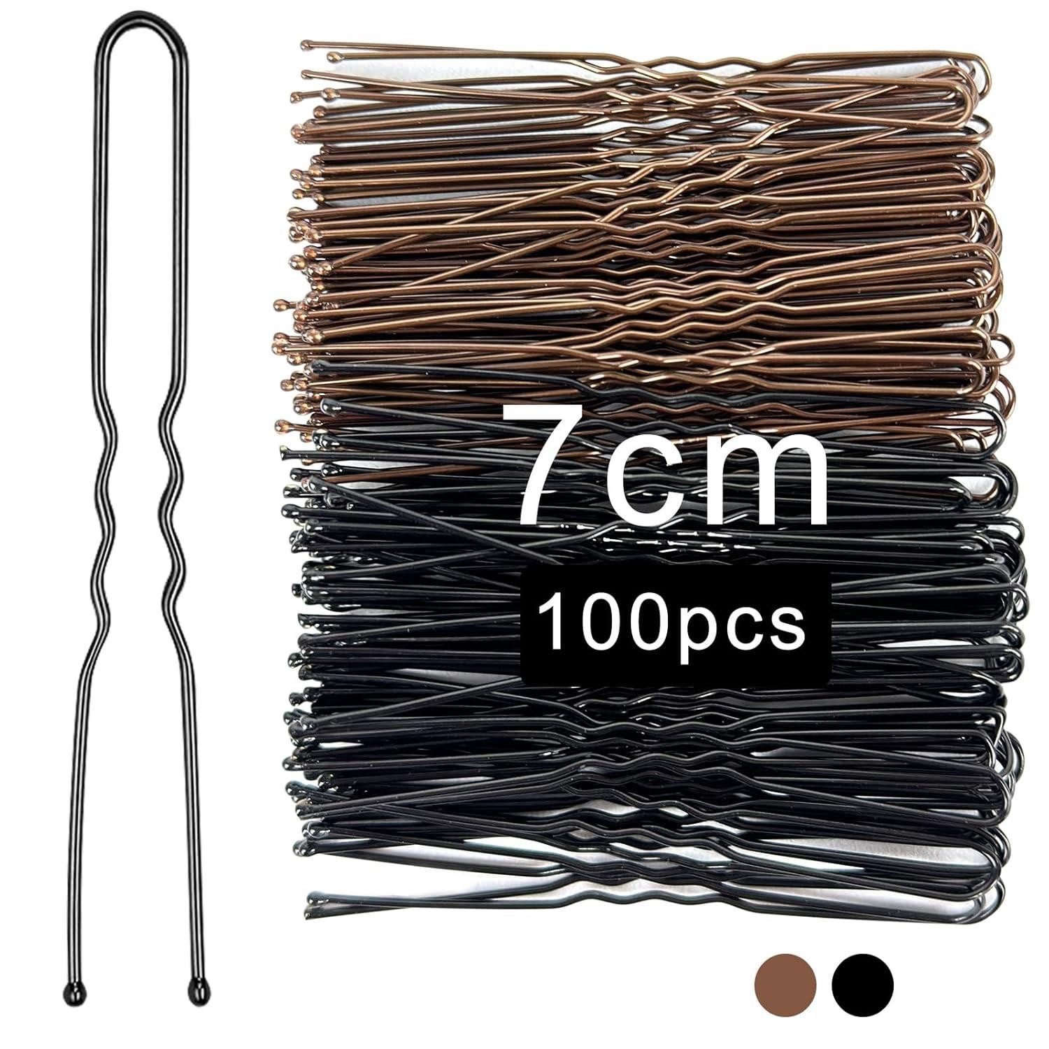 Artikelbeschreibung: U-förmige Haarnadeln sind ein unverzichtbares Accessoire für Frauen und Mädchen, die Wert auf ein perfektes Haarstyling legen. Dieses Set enthält 100 U-förmige bobby pins in Schwarz und Braun, jeweils 50 Stück, mit einer Довжина von 7 cm. Die Haarnadeln sind vielseitig einsetzbar und eignen sich perfekt für verschiedene Frisuren wie Brötchen, Zöpfe und Hochsteckfrisuren.