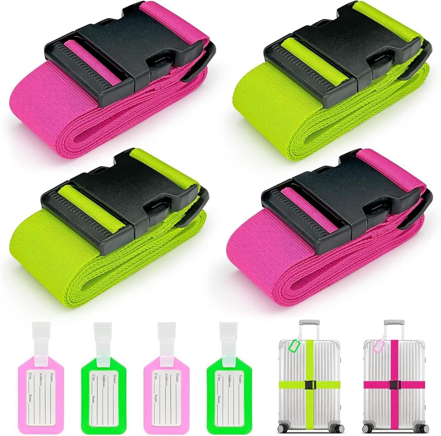 ????Kofferbänder 4er Set: Enthält 4 Koffergurte mit Farbanpassungen in Neonrosa und Neongrün sowie 2 praktische Kofferanhänger. Die Розмір von 5 * 200 cm passt perfekt für die meisten Koffermodelle auf dem Markt.