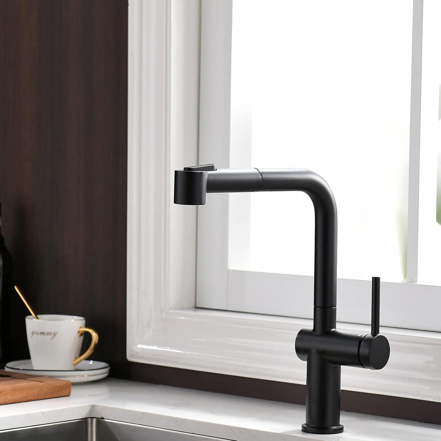 Die schwarze Küchenarmatur verfügt über zwei Sprühmodi, die es Ihnen ermöglichen, zwischen einem spritzfreien Strahl und einem kraftvollen Vorspray zu wechseln. Dies sorgt für eine effiziente Reinigung und spart Zeit bei der Küchenarbeit. Zudem ist die Armatur ausziehbar, um auch schwer erreichbare Stellen mühelos zu erreichen.