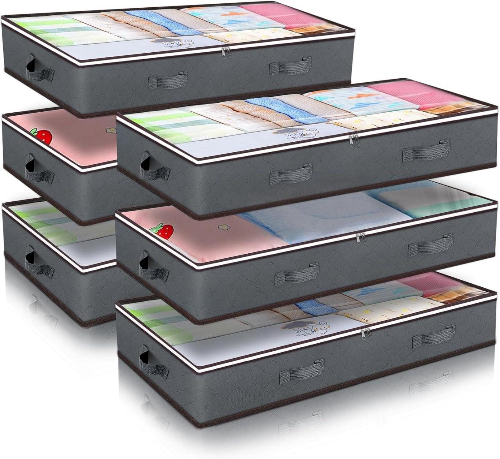 Die Budding Joy 6 Stück 90L Unterbettkommode ist die ideale Lösung für die Aufbewahrung von Kleidung, Bettdecken und Bettwäsche. Dank des robusten Edelstahl-Reißverschlusses bleiben Ihre Gegenstände vor Staub, Schädlingen und Feuchtigkeit geschützt. Die verstärkten Griffe ermöglichen ein einfaches Herausziehen der Kommode unter dem Bett und sorgen für eine zuverlässige Nutzung über lange Zeit.