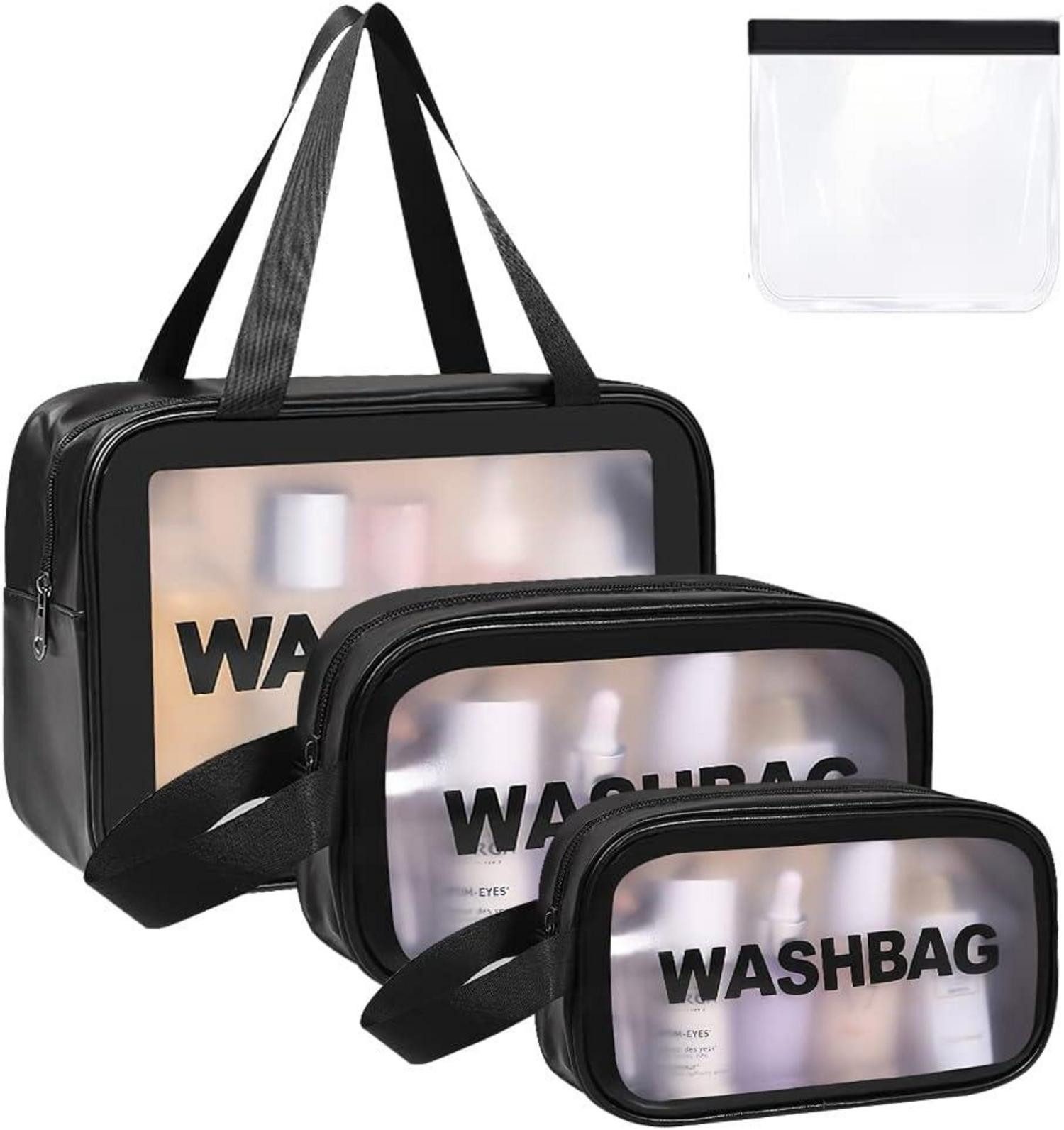 Set mit 4 Kosmetiktaschen: Enthält eine große, eine mittlere, eine kleine Kosmetiktasche und einen auslaufsicheren Flüssigkeitsbeutel gemäß Flughafenbestimmungen. Erfüllen Sie all Ihre Aufbewahrungsbedürfnisse mit diesem praktischen Set.