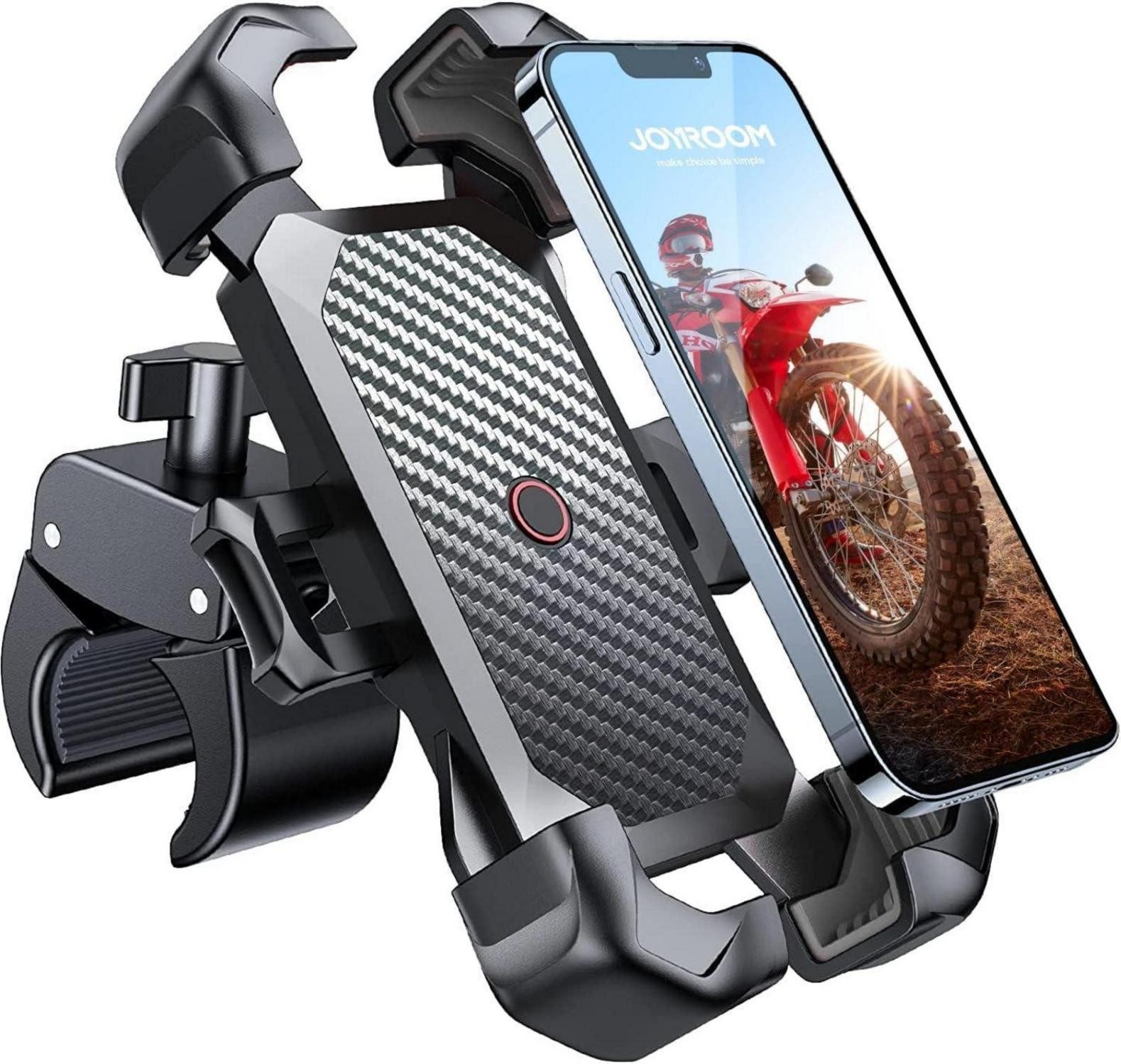 JOYROOM 2024 Handyhalterung Fahrrad, Handyhalterung Motorrad, Universal Lenker Holder für iPhone 15 Samsung S24 ist die ultimative Lösung, um Ihr Smartphone sicher und stabil während Ihrer Fahrt zu halten. Mit soliden verstärkten Kugelgelenken, die den SGS Militärstandard-Zähigkeitstest bestanden haben, bietet diese Handyhalterung eine langlebige und zuverlässige Leistung.