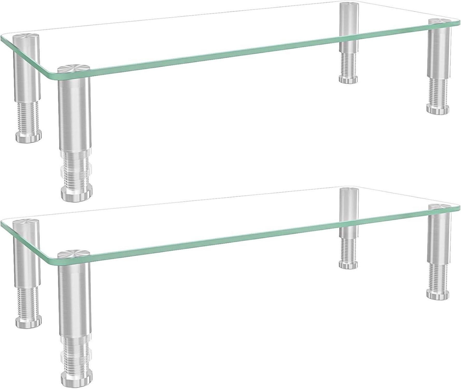 Der Hemudu 2-teilige PC-Monitorständer mit höhenverstellbarem Multimedia-Tischständer ist die perfekte Lösung, um Ihre Arbeitsstation zu optimieren. Mit einer robusten Konstruktion aus 1/4 Zoll gehärtetem Sicherheitsglas kann dieses Produkt problemlos bis zu 88 Pfund tragen, während die Höhe der Beine aus Edelstahl von 8,6 cm bis 12,4 cm frei eingestellt werden kann.
