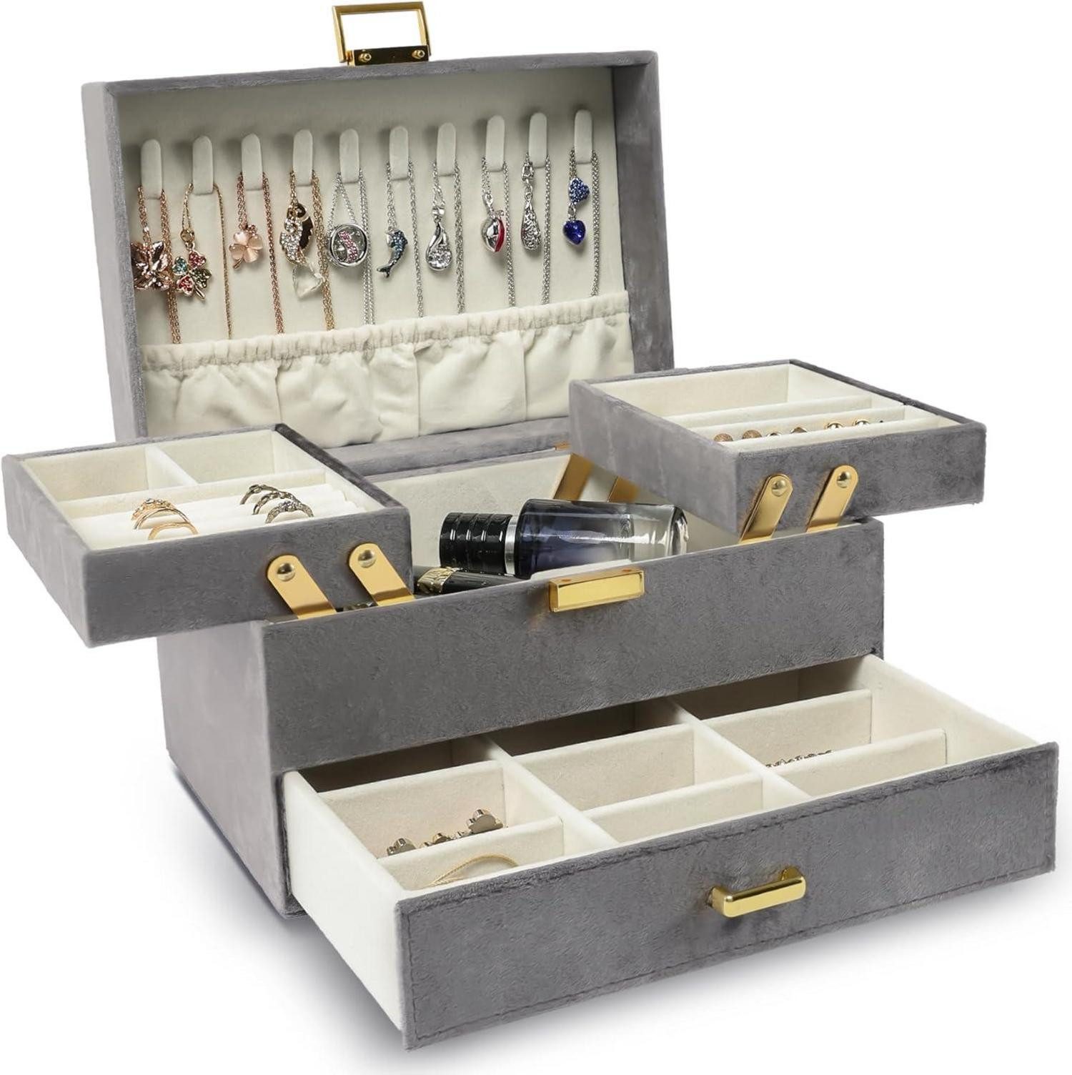 Platzsparender Schmuckbox: Mit unserer jewelry organizer aus Samtstoff ist Ihr gesamter Schmuck organisiert und griffbereit. Von da an haben Sie einen hellen Schminktisch, der Ihr Zimmer aufgeräumter und eleganter erscheinen lässt. Unsere großen Schmuckschatullen können Ihre wertvolle Zeit sparen.