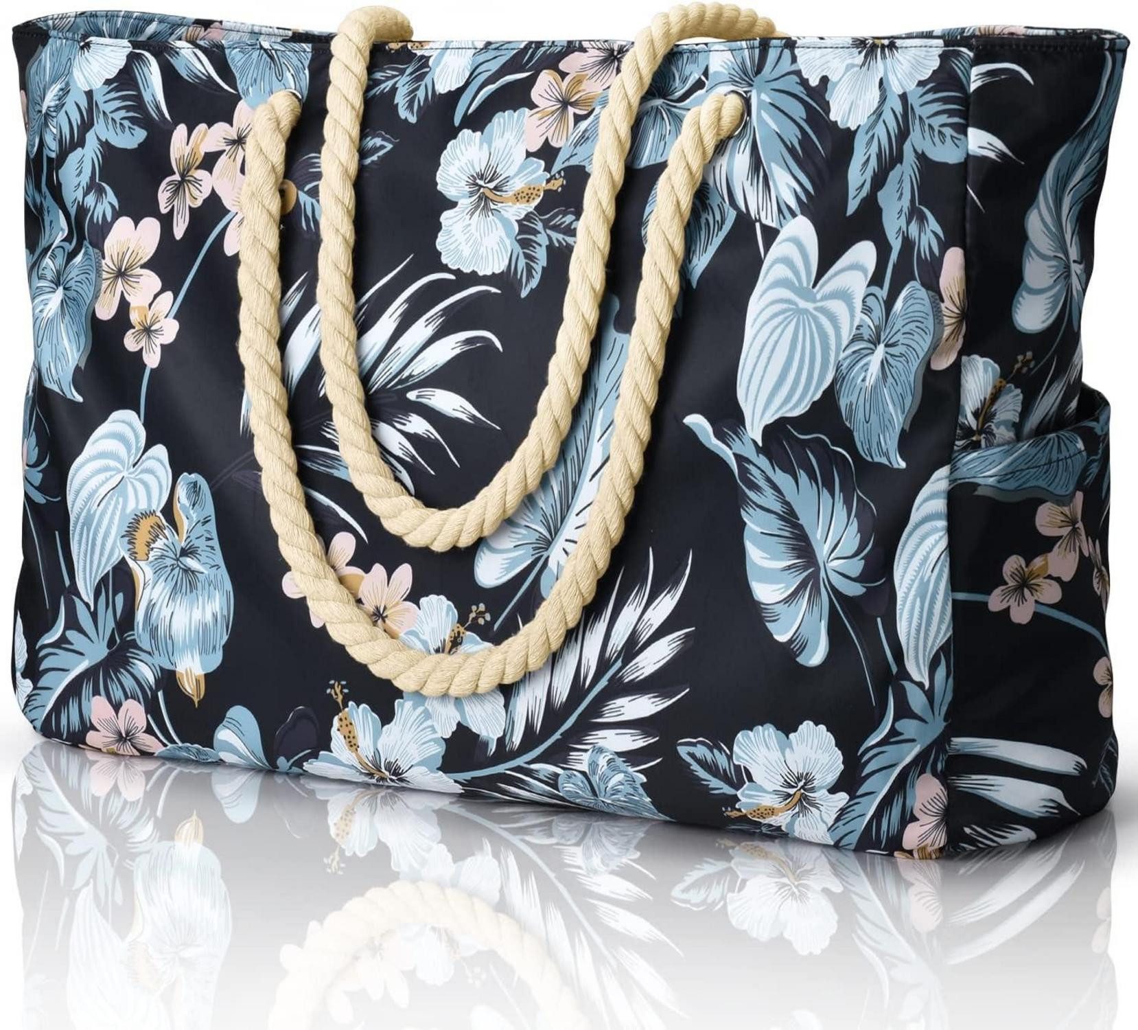 Diese stilvolle und auffällige Strandtasche ist für verschiedene Anlässe geeignet - Strand, Fitnessstudio, Arbeit, Reisen, Einkaufen, Yoga, Lebensmittel, Urlaub, Picknick usw. Diese leichte und faltbare Strandtasche ist sehr leicht zu reinigen und zu verstauen. Sie verfügt über einen oberen Reißverschluss und einen gut gestalteten Schultergurt.