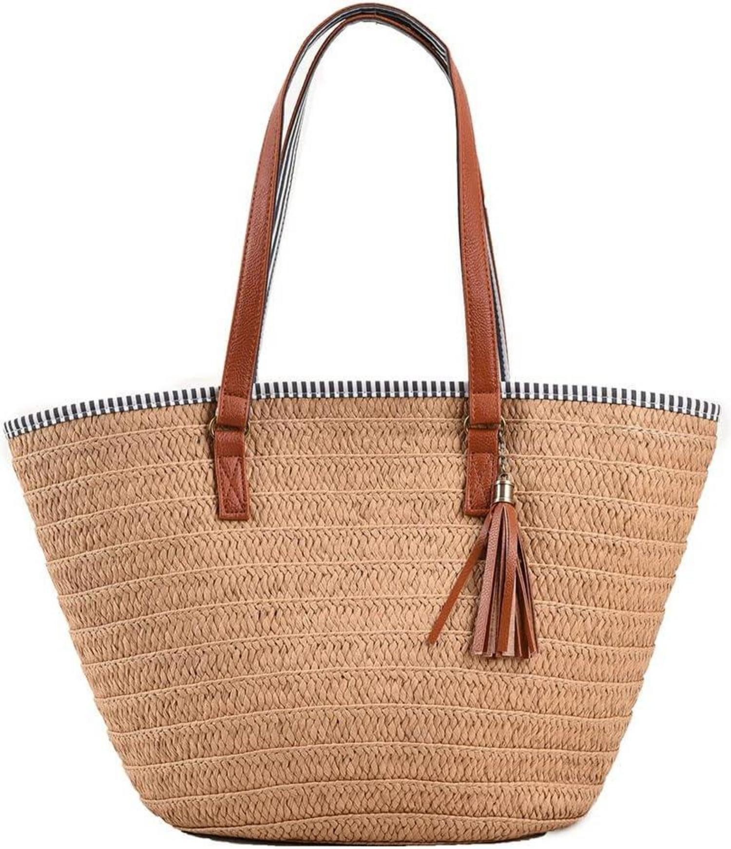 Das schicke Design der Strandtasche mit Quastenverzierung verleiht ihr eine elegante Note, die zu jedem Anlass passt, sei es beim Einkaufen, auf Reisen, bei Strandpartys oder im täglichen Leben. Der Reißverschluss sowie der Leder Schultergurt sorgen für bequeme Handhabung und Sicherheit Ihrer persönlichen Gegenstände. Das Innenfutter aus strapazierfähigem Polyester gewährleistet Langlebigkeit und Pflegeleichtigkeit, denn die Tasche ist per Hand waschbar.