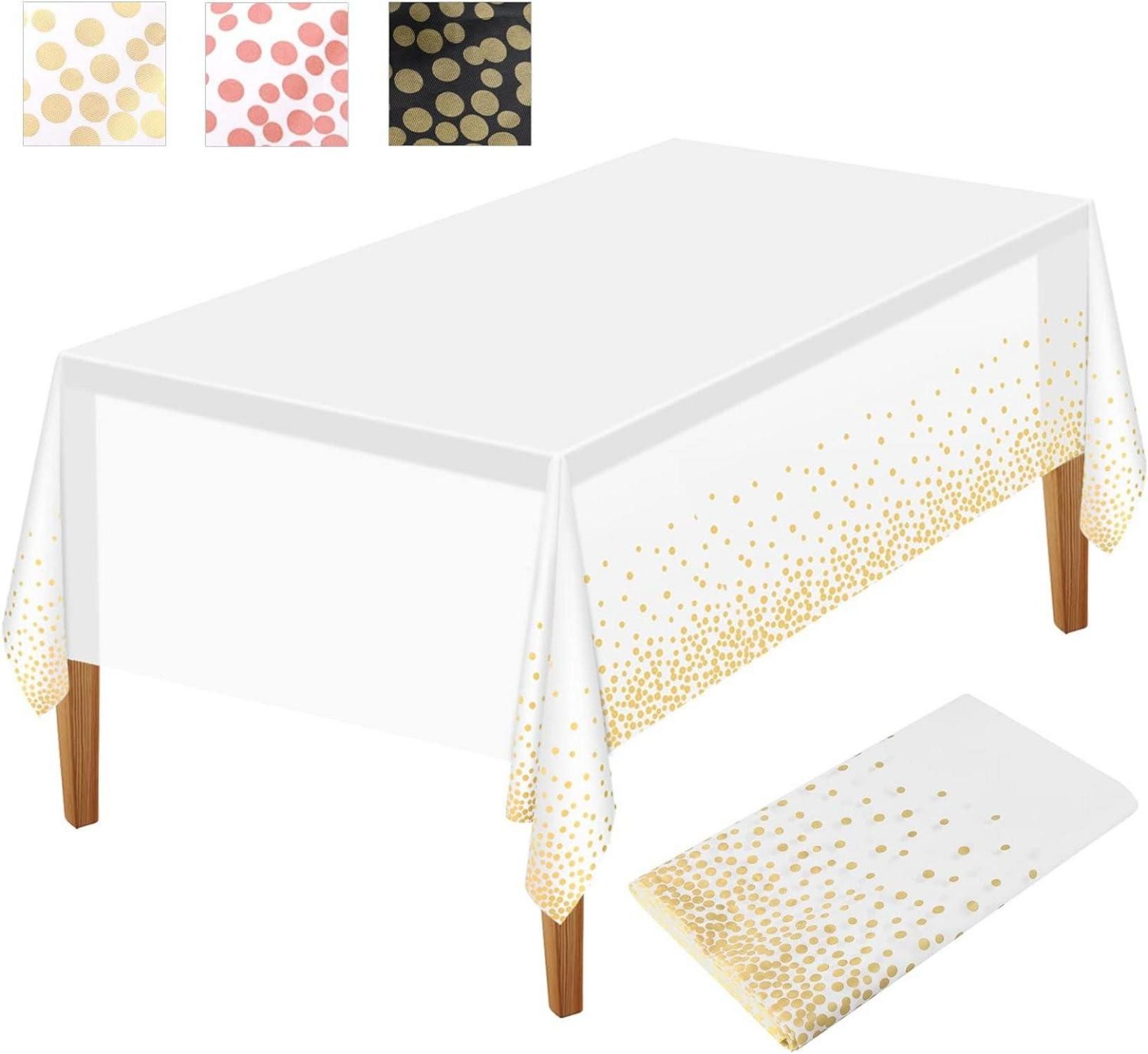 Hergestellt aus dünnem und leichtem PEVA-Material, ist die Tischdecke wasserdicht, auslaufsicher und leicht zu reinigen – perfekt für jede Party. Das Design mit weißen und goldenen Punkten auf weißem Hintergrund verleiht Ihrer Feier eine glamouröse Note und ist ideal für eine weiß-goldene Mottoparty.