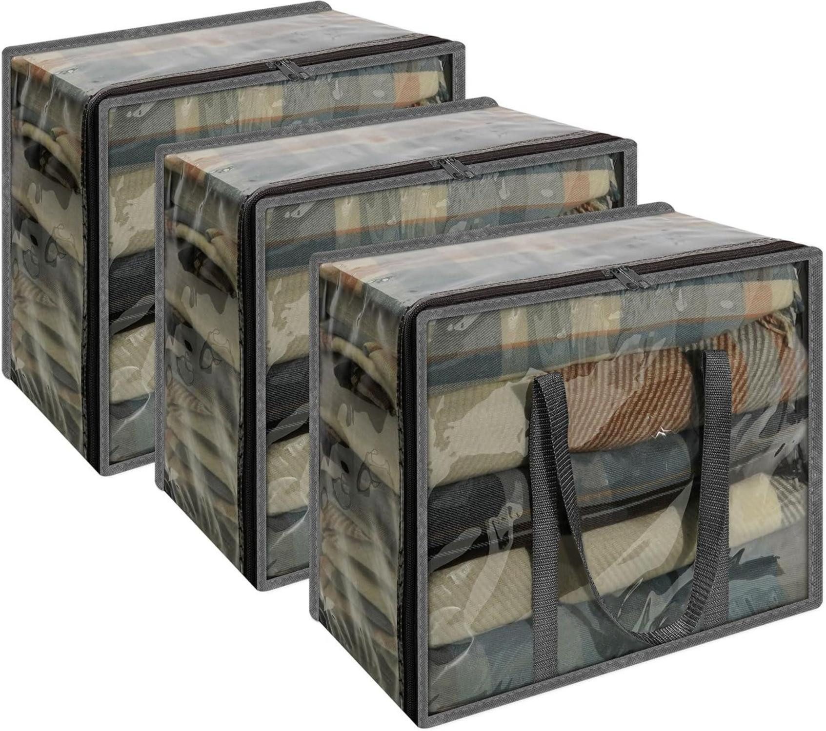 Großes Fassungsvermögen: Jede transparente Aufbewahrungstasche misst 46x38x23cm, ideal für Ihr Bett oder Dachboden. Und dieser durchsichtige Aufbewahrungs-Organisator hat ein großes Fassungsvermögen von 40L, es hat genug Platz, um Kleidung, Decken, Handtücher und Kissen zu organisieren.