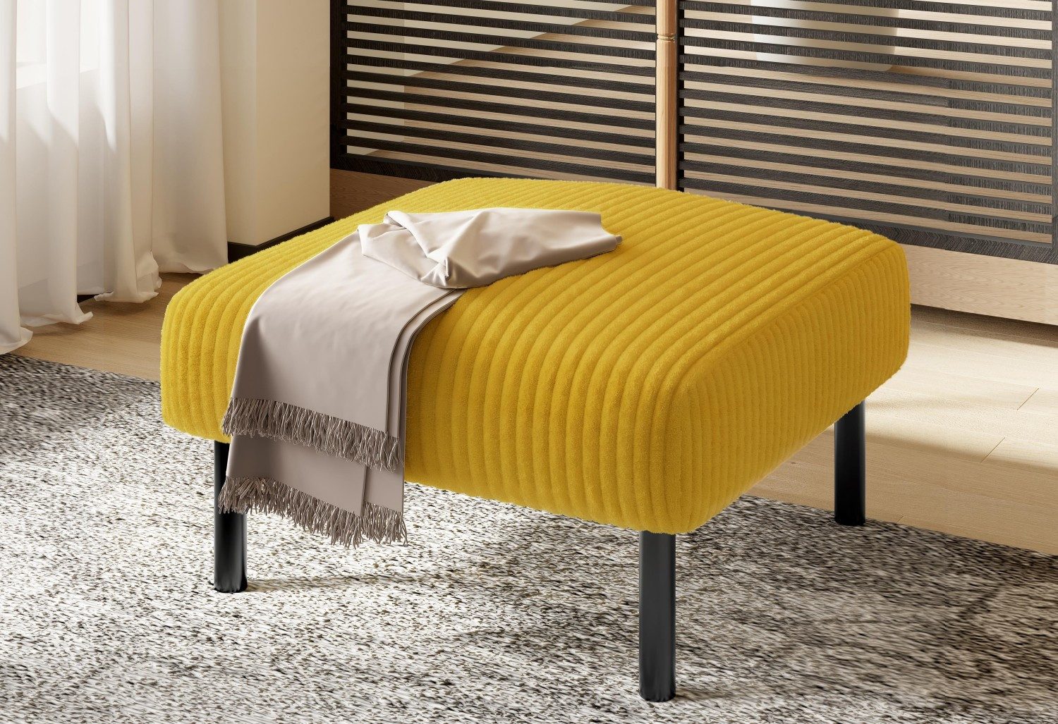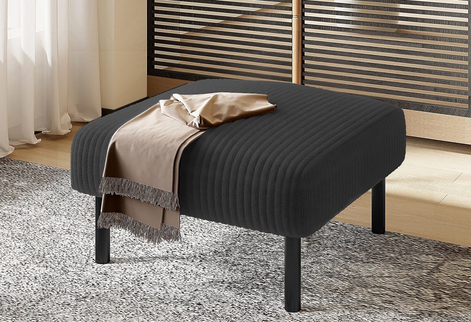 Die durchdachten Rundungen schützen besonders Kleinkinder beim Krabbeln und Toben (z.B. typische Spielunfälle an Kantecken). Die zylindrischen, massiven Metallbeine (Ø 5cm) bieten nicht nur optische Eleganz, sondern verhindern Wackeln selbst bei wilderen Kissenschlachten. Ein echtes Plus für junge Familien: Der Hocker transformiert zum sicheren Wickeltisch-Aufsatz oder Spielpodest, ohne Verletzungsrisiko durch scharfe Elemente.
