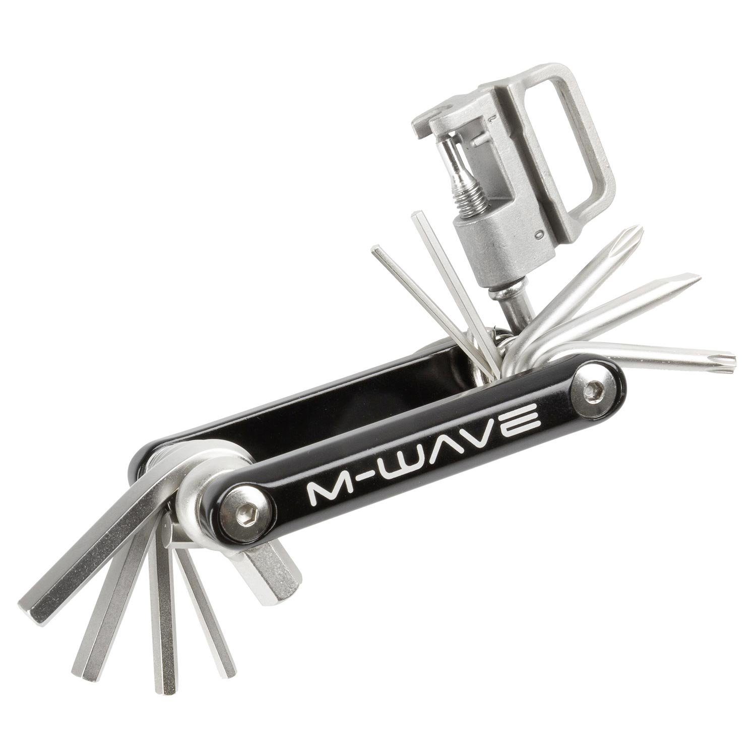 Das kleine Fahrradwerkzeug von M-Wave ist ein echtes Multitalent und eignet sich zum Reparieren fast aller kleineren Fahrradpannen unterwegs. Durch sein kompaktes Maß lässt es sich problemlos auf jede Radtour mitnehmen und stellt die wichtigsten Werkzeuge wie Kreuz- und Schlitzschraubendreher, Innensechskantschlüssel in mehreren Größen sowie Vielzahn- und Speichenschlüssel und einen Kettennietdrücker bereit.