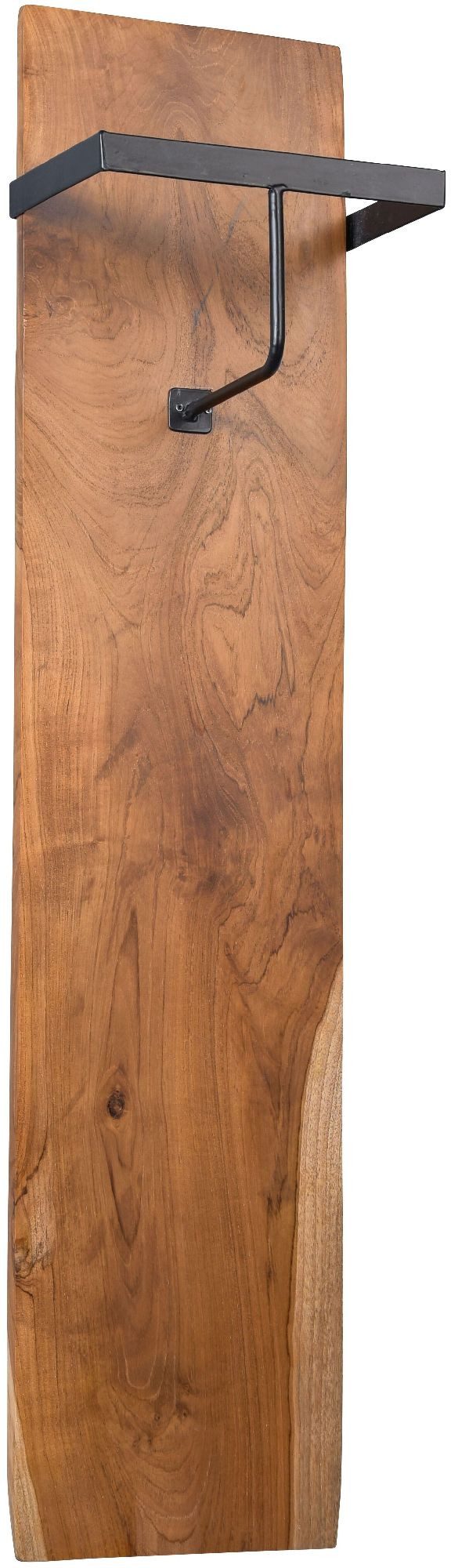Die Garderobe Alaska 1 ist eine perfekte Symbiose aus natürlicher Schönheit und modernem Design. Mit ihrer markanten Baumkante aus massivem Teakholz strahlt sie eine warme, natürliche Ausstrahlung aus, die jedes Zuhause bereichert. Der edle Kontrast zwischen dem rustikalen Holz und den schwarzen Metallbügeln verleiht der Garderobe eine einzigartige, zeitlose Eleganz. Ihre klare Form und die minimalistische Gestaltung machen sie zu einem stilvollen Blickfang in jedem Raum. Diese Garderobe überzeugt nicht nur durch ihre Optik, sondern auch durch ihre Funktionalität. Die großzügige Höhe von 110 cm bietet ausreichend Platz für Jacken, Mäntel und Accessoires. Die Kombination aus Holz und Metall sorgt für Stabilität und Langlebigkeit, während die schlichte Farbgebung in Schwarz und Braun eine warme und einladende Atmosphäre schafft. Die Garderobe Alaska 1 fügt sich harmonisch in moderne wie auch klassische Wohnstile ein und sorgt für Ordnung und Stil in Ihrem Flur, Schlafzimmer oder Ankleideraum. Mit der Garderobe Alaska 1 entscheiden Sie sich für ein Möbelstück, das durch seine natürliche Ausstrahlung und seine durchdachte Funktionalität gleichermaßen begeistert.