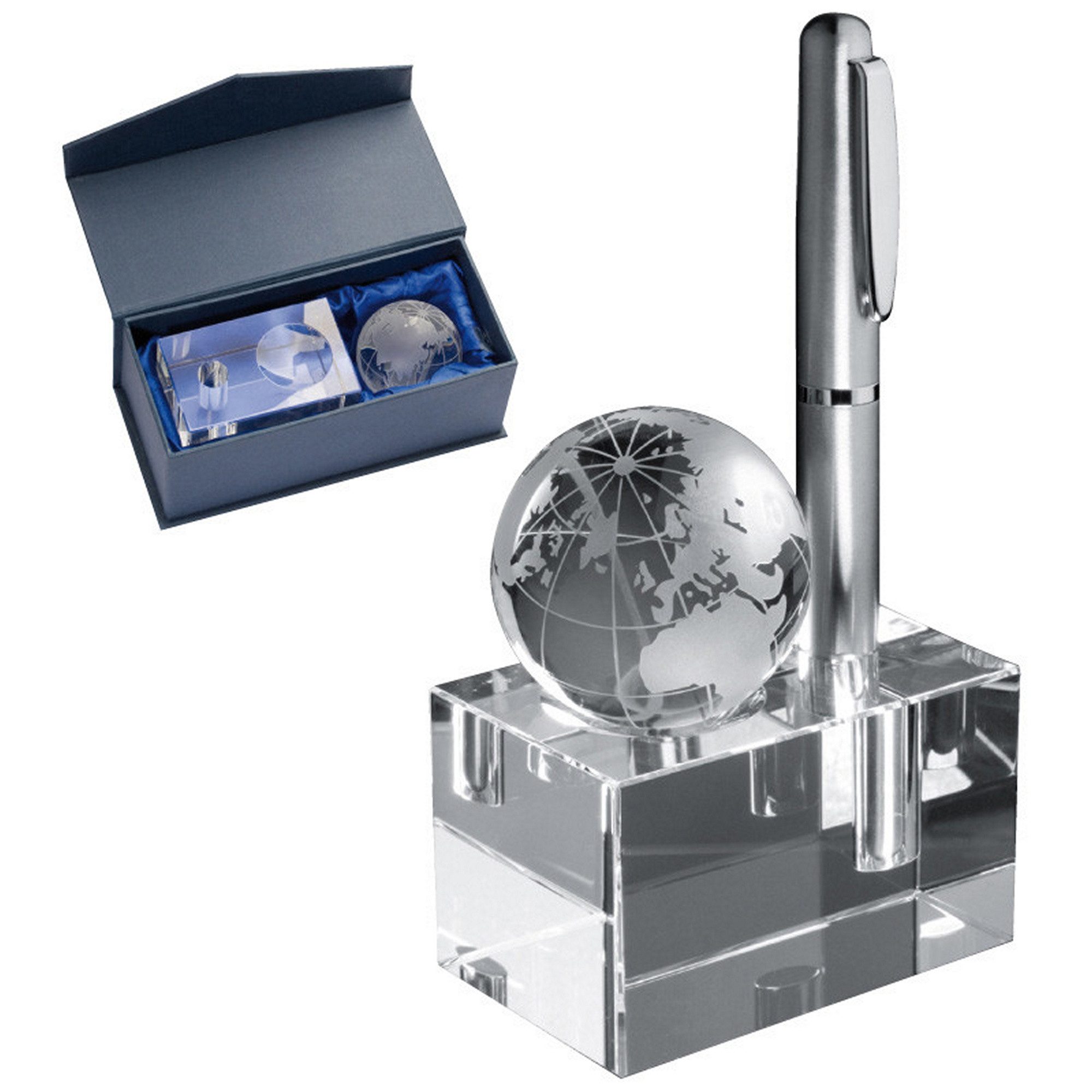 Kugelschreiber massiver Stiftehalter aus Glas mit abnehmbarer Weltzeitkugel
