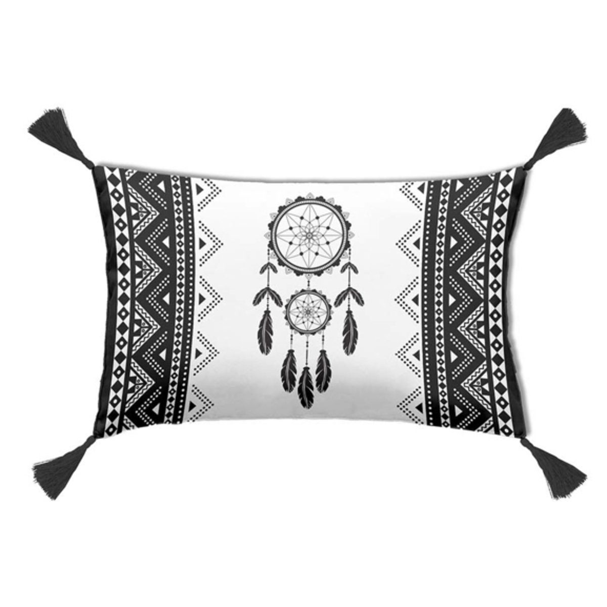 Unsere Dekokissen verschmelzen zeitlose Eleganz mit Boho-Chic. Die Kombination von Schwarz und Weiß wird durch künstlerische Details wie Traumfänger, Boho-Muster und Quasten betont