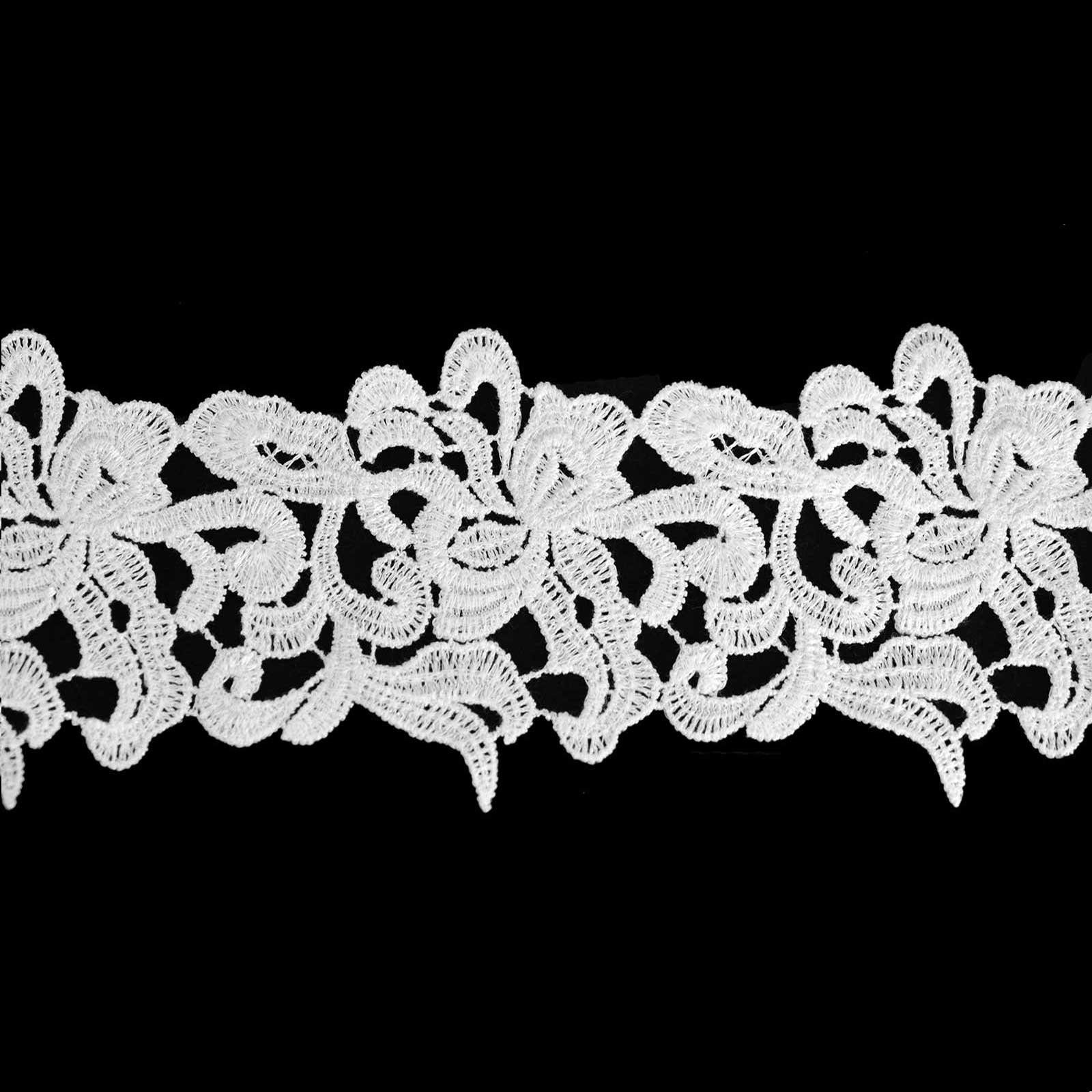 Diese edle Spitzenborte ist präzise gefertigt und hat markantes Ornament-Design. Bestens geeignet zum Verzieren von Kleidern, Röcken, Blusen und Hosen, aber auch sehr interessant für Tischdecken, Dekokissen und andere Wohnraum Accessoires.