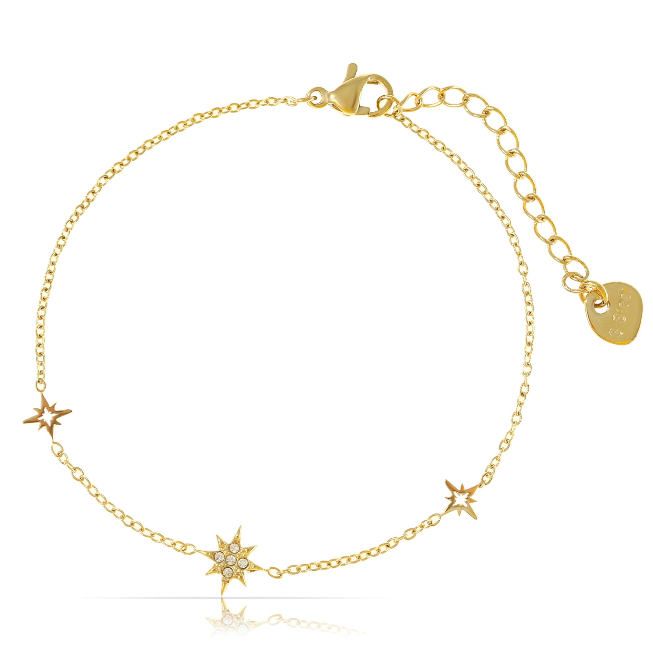 » Je nach Варіанти ist das Armband in Gold oder Silber gefertigt. Das Damen Armband hat entweder Herzen oder Sterne als Anhänger und wird durch Edelsteine ergänzt. Die Edelsteine machen aus dem Glücksarmband Damen ein elegantes Accessoire.