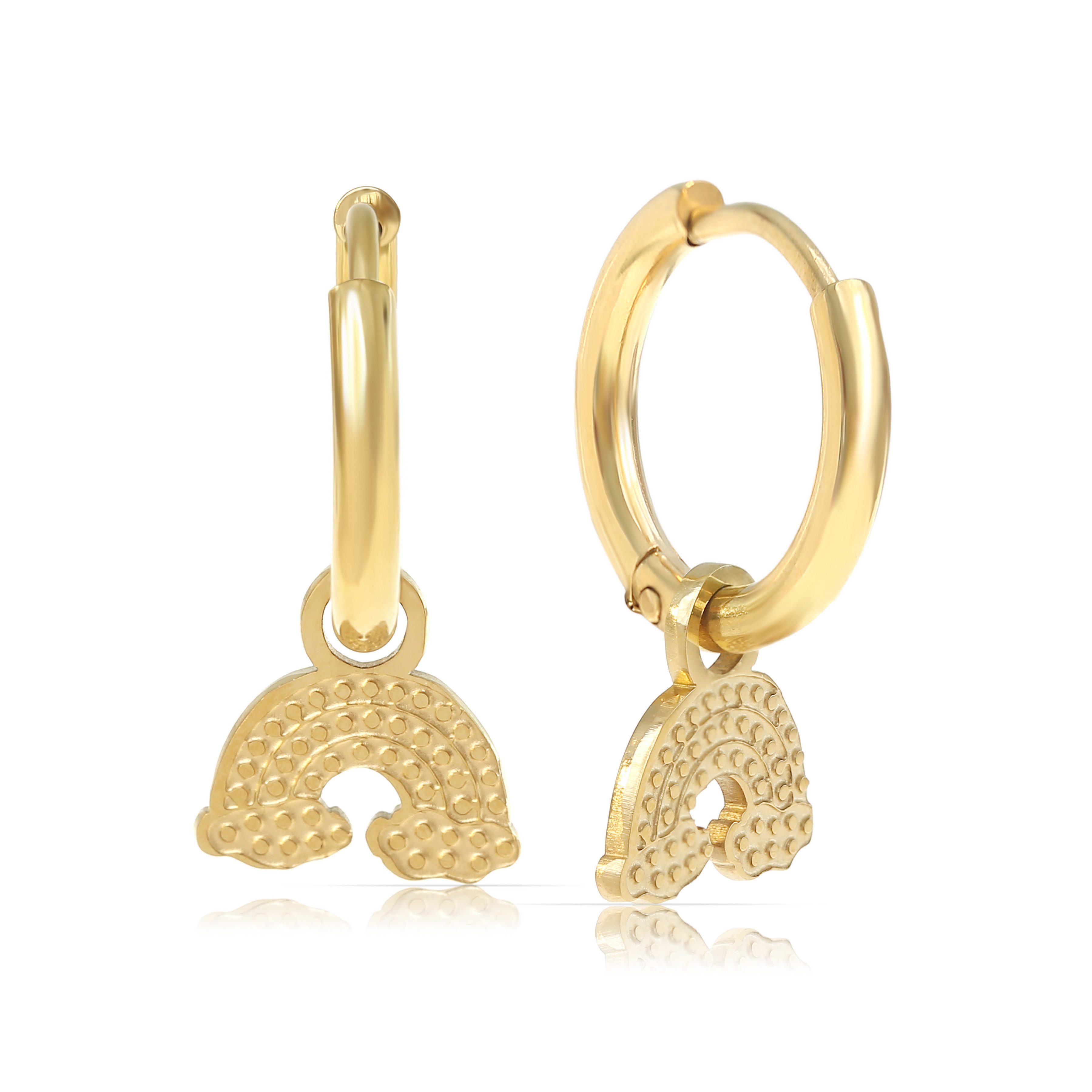 Diese hängenden Ohrringe in Silber oder Gold bringen Farbe und Lebensfreude in jedes Outfit. Der Regenbogen-Anhänger mit strukturierter Oberfläche verleiht dem Design eine verspielte, positive Ausstrahlung. Die feine Verarbeitung unterstreicht den charmanten Charakter dieses besonderen Schmuckstücks.