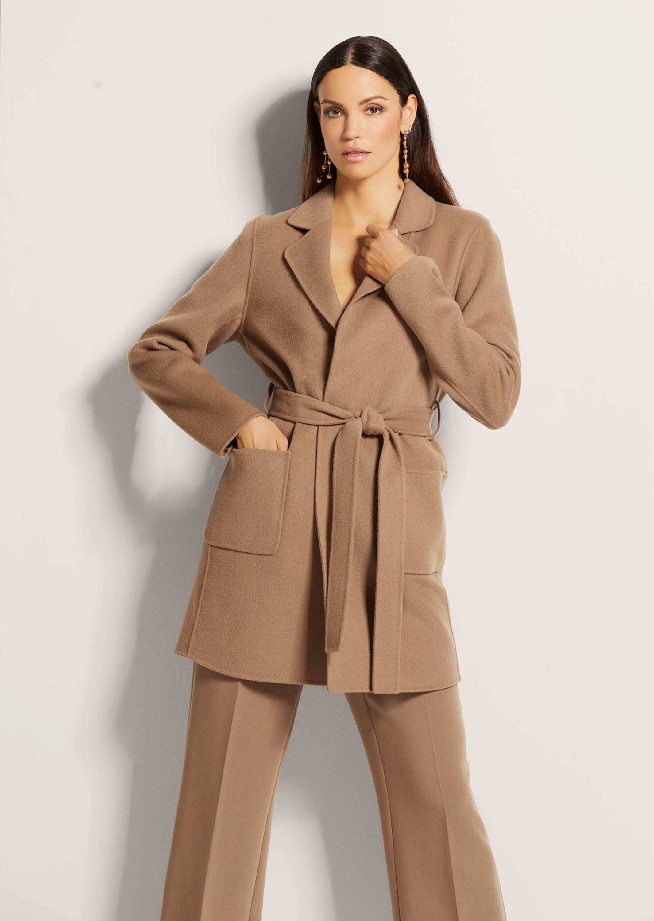 Besondere Merkmale | Stilvoller Wollmantel mit aufgesetzten Taschen, Bindeband und Langarm |