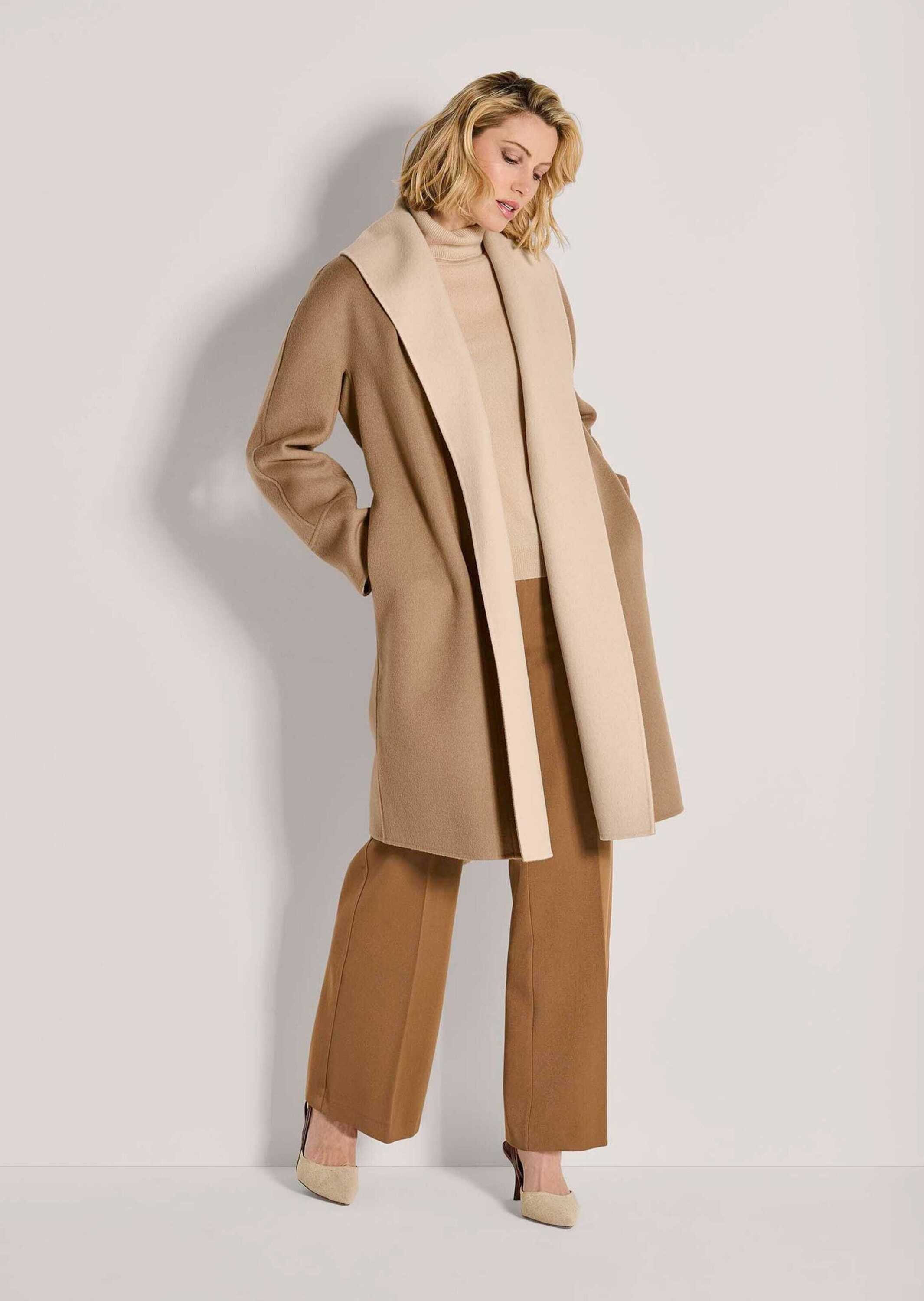 Besondere Merkmale | Gefütterter Wollmantel mit Schalkragen, Bindeband und langen Ärmeln |