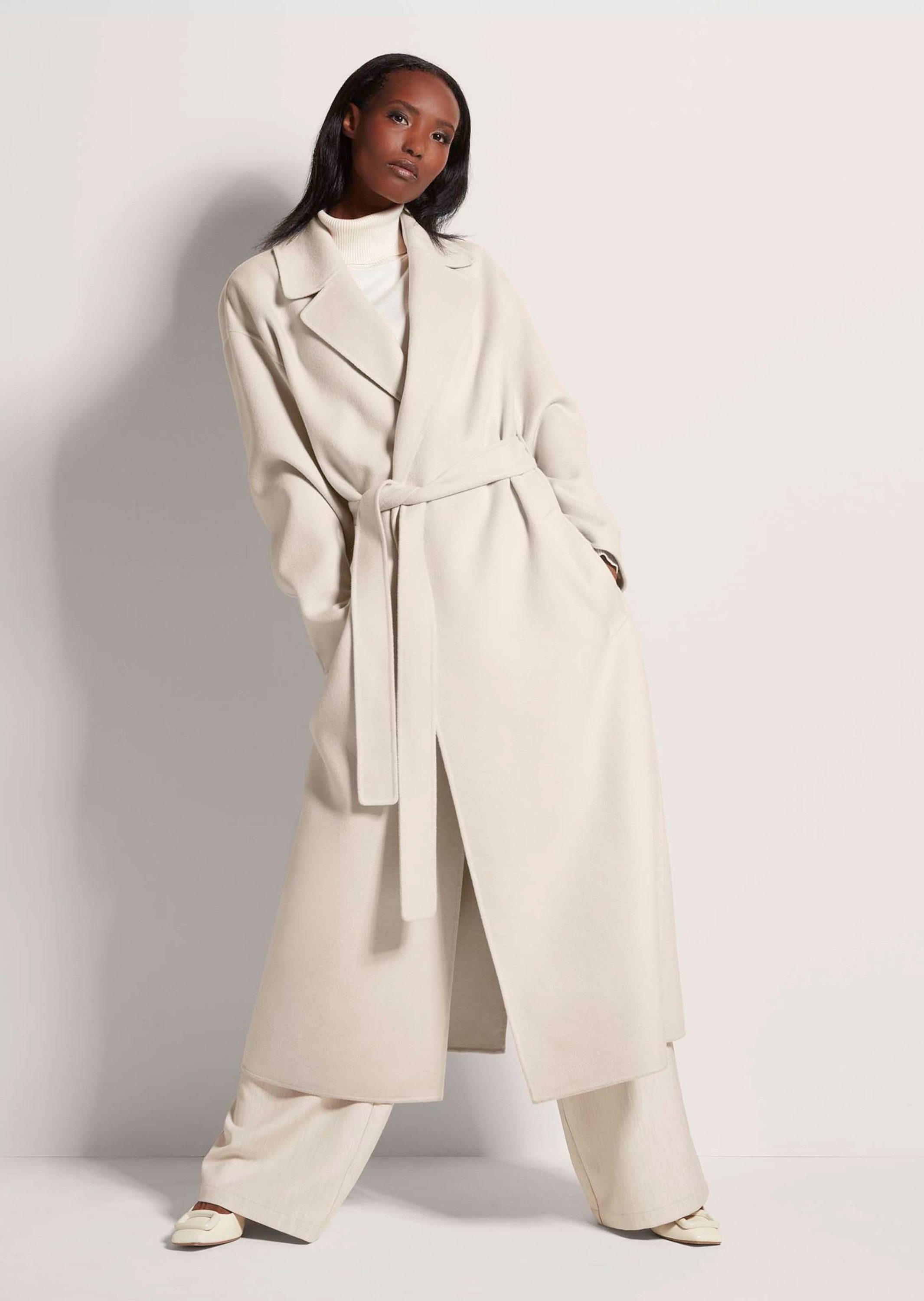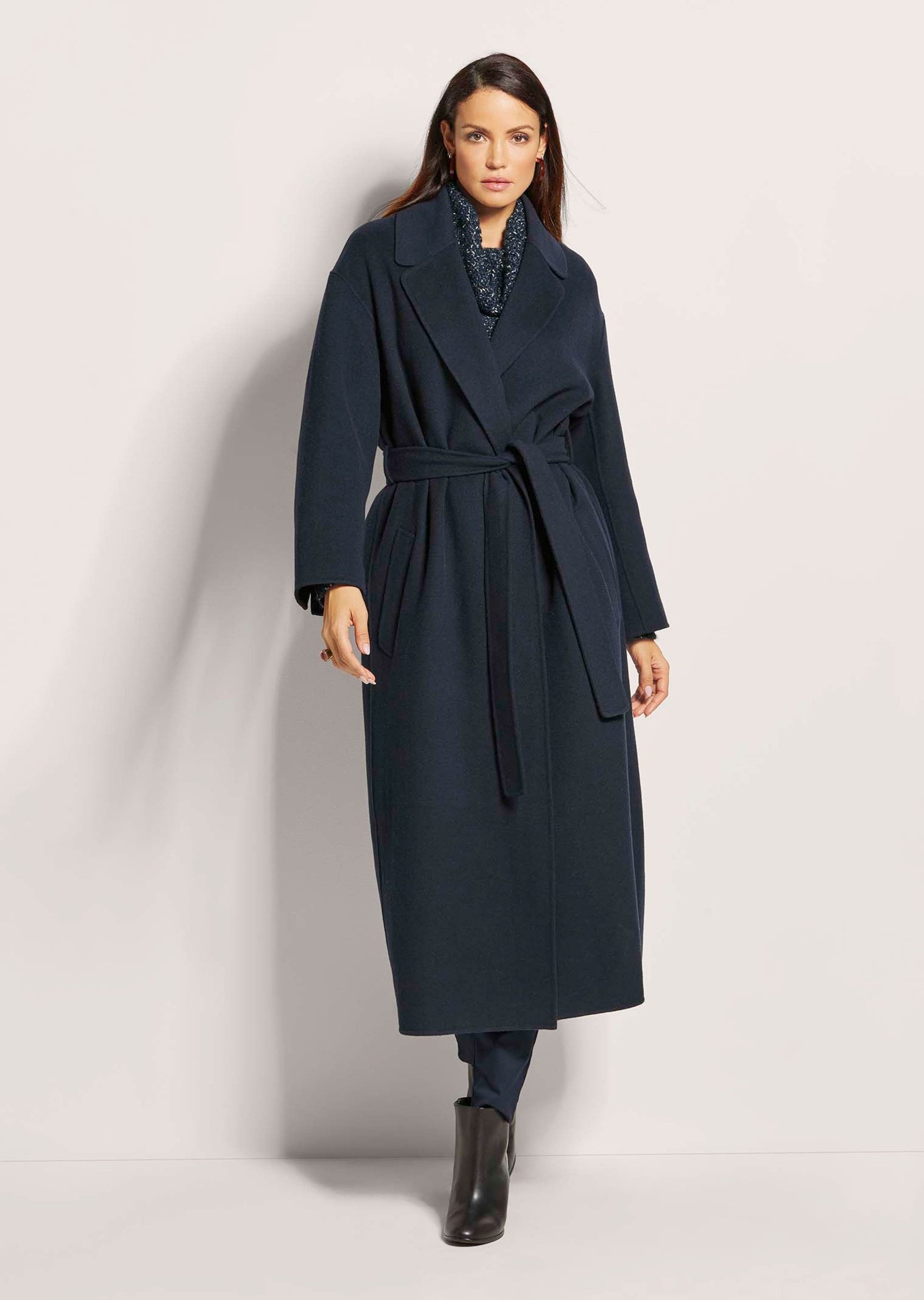 Besondere Merkmale | Double-Face-Mantel mit eingearbeiteten Taschen, Bindeband und Langarm |