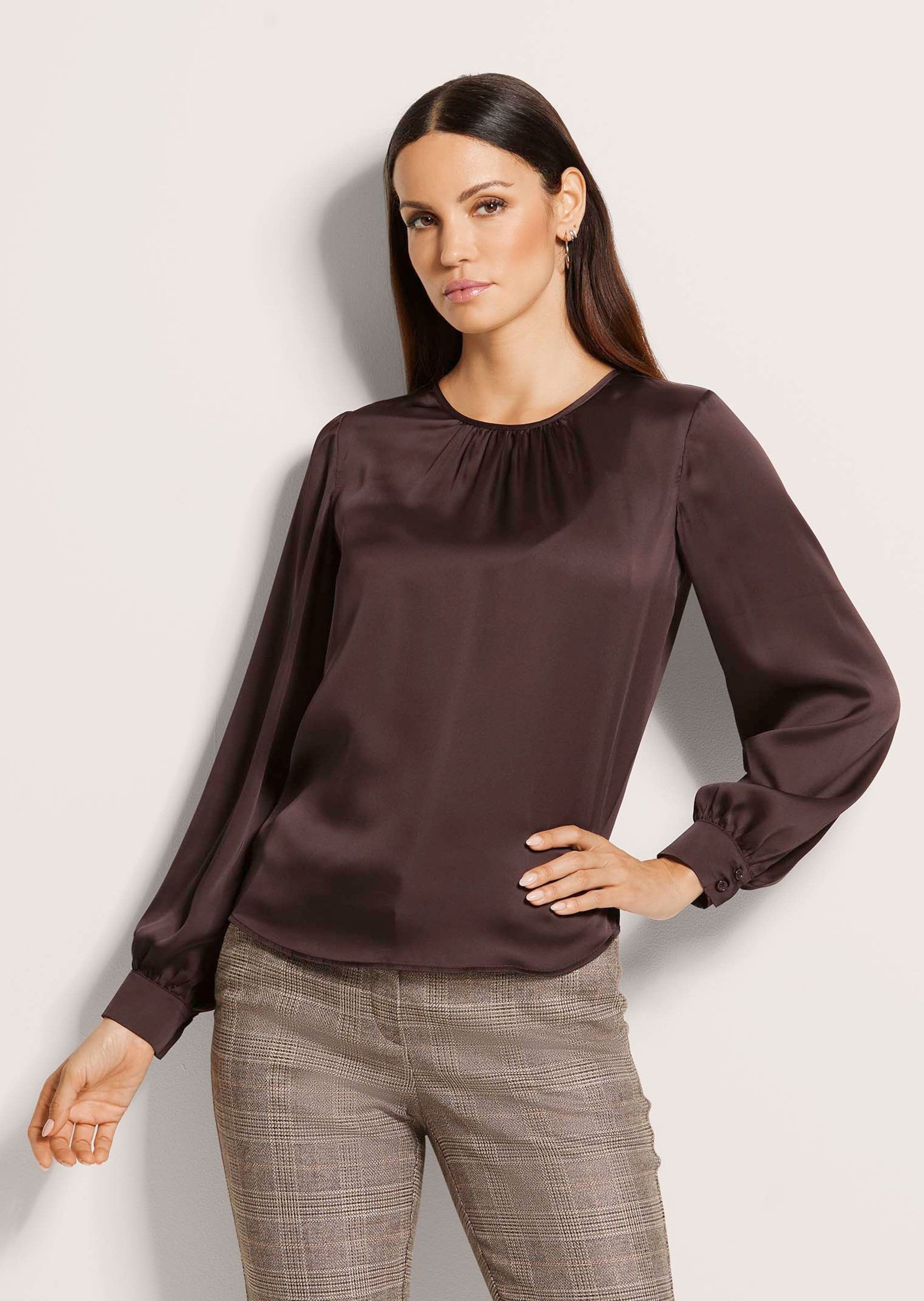 Besondere Merkmale | Rundhalsbluse mit Ausschnittfalten, langärmelig |