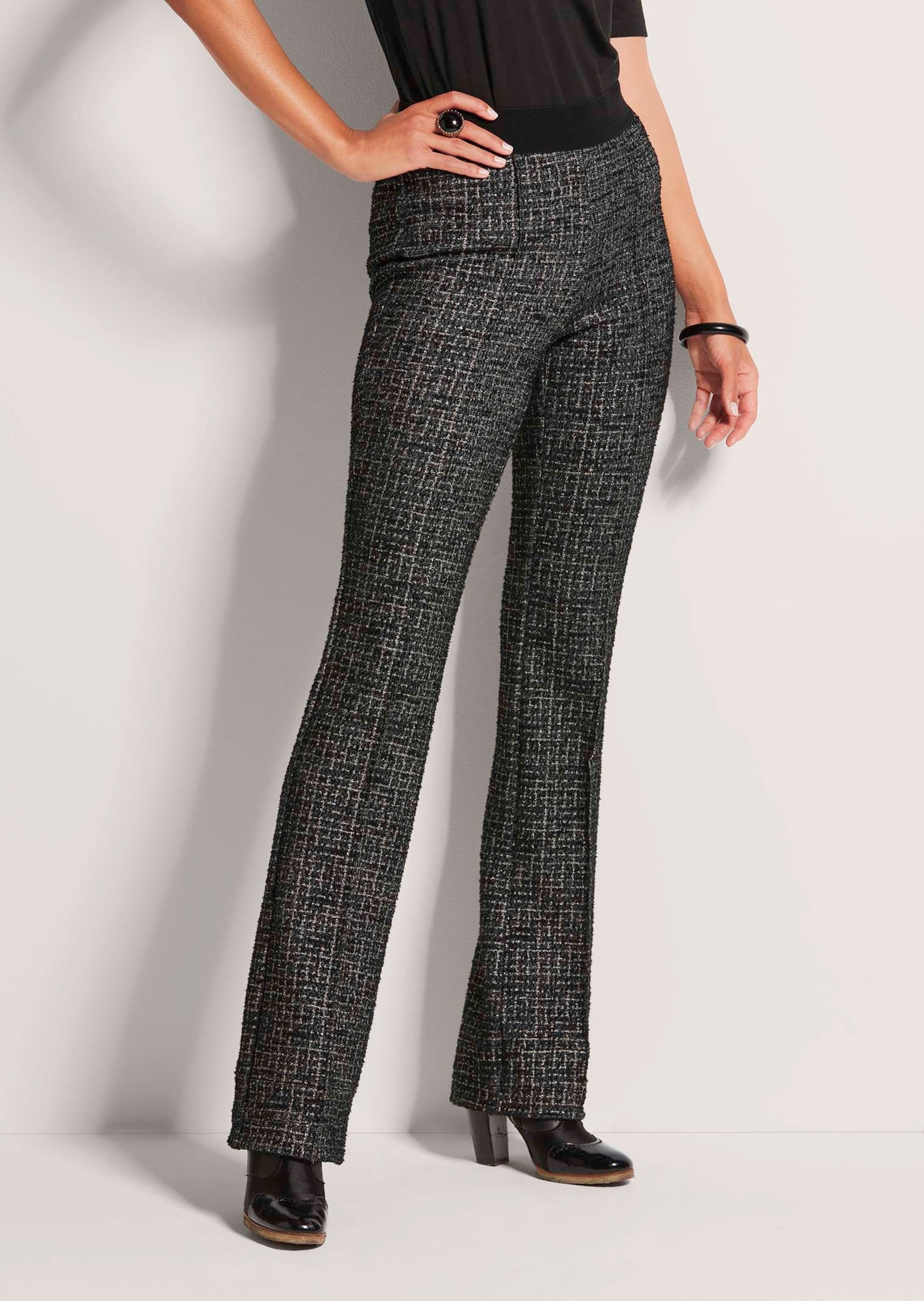 Besondere Merkmale | Stoffhose mit ausgestellten langen Beinen und abgenähten Biesen |