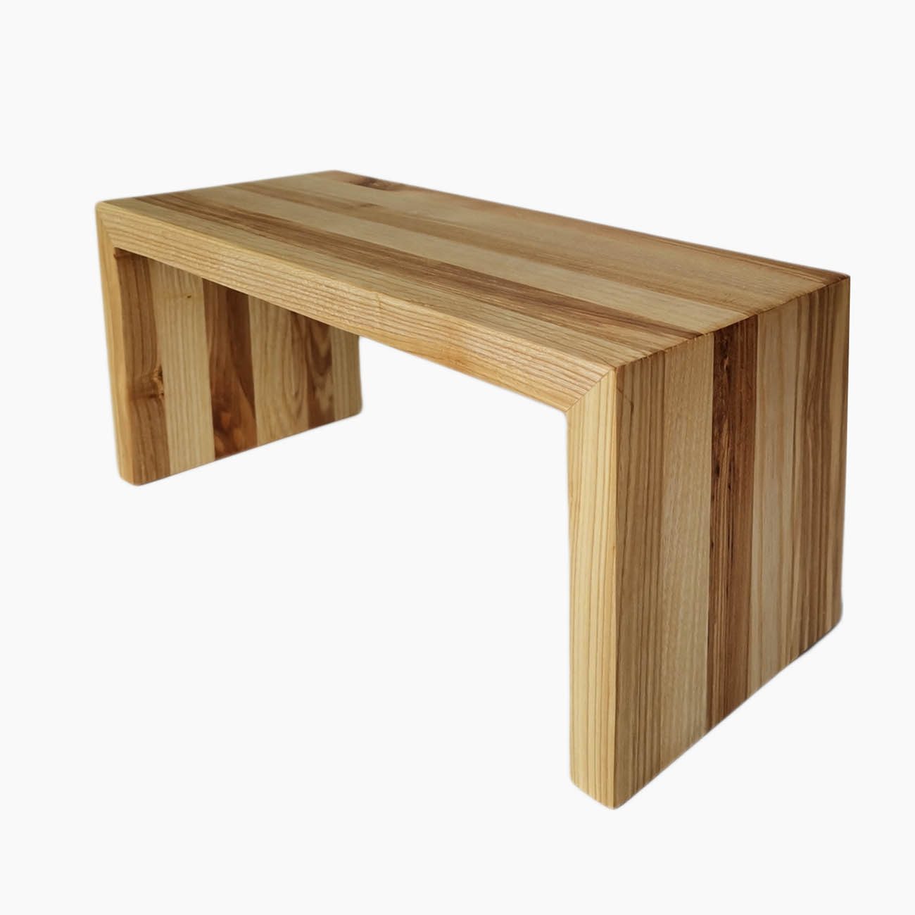 Materialhinweis | Aus stegverleimtem 22 mm starkem Eschen/ Ahornholz hell/dunkel gefertigter Hocker. |