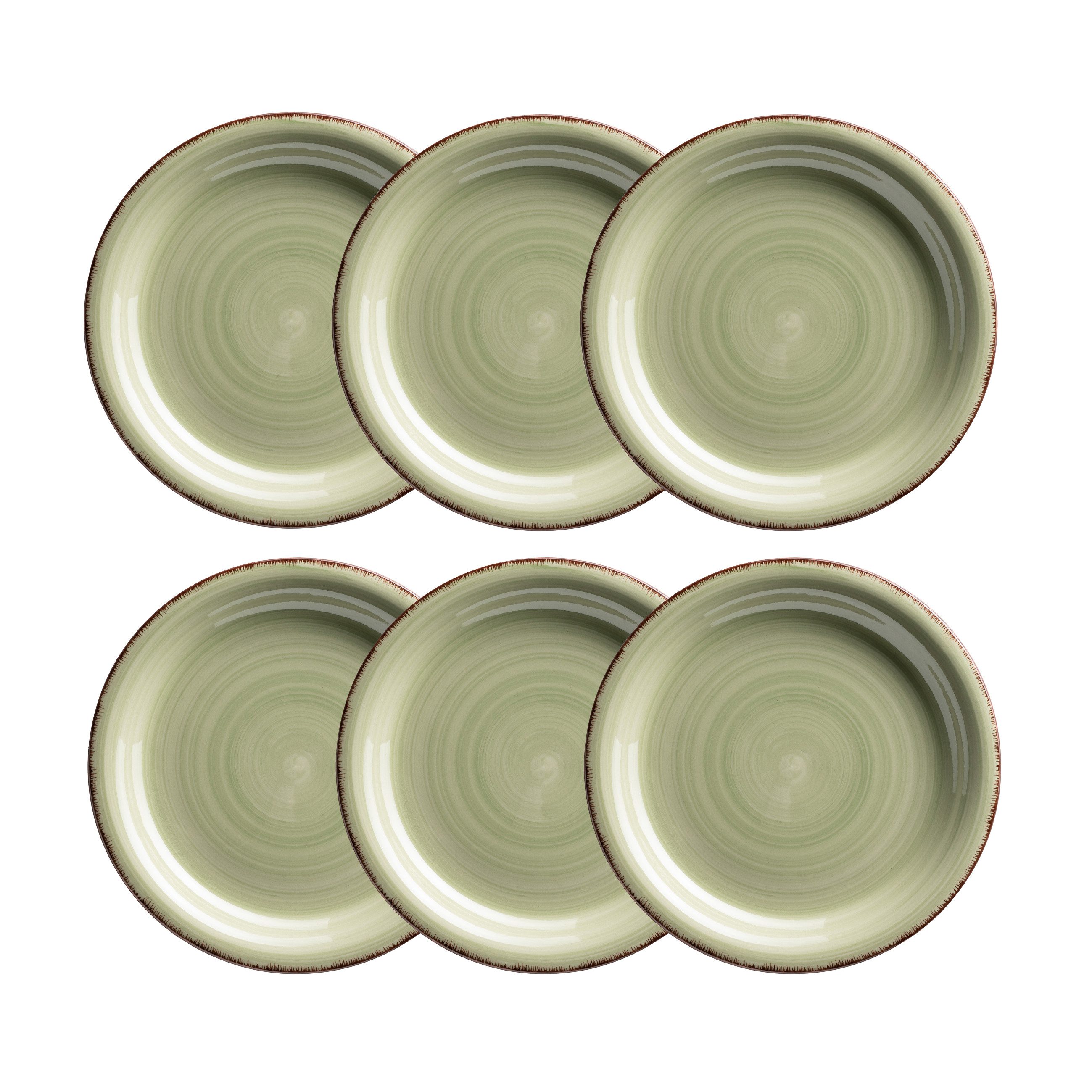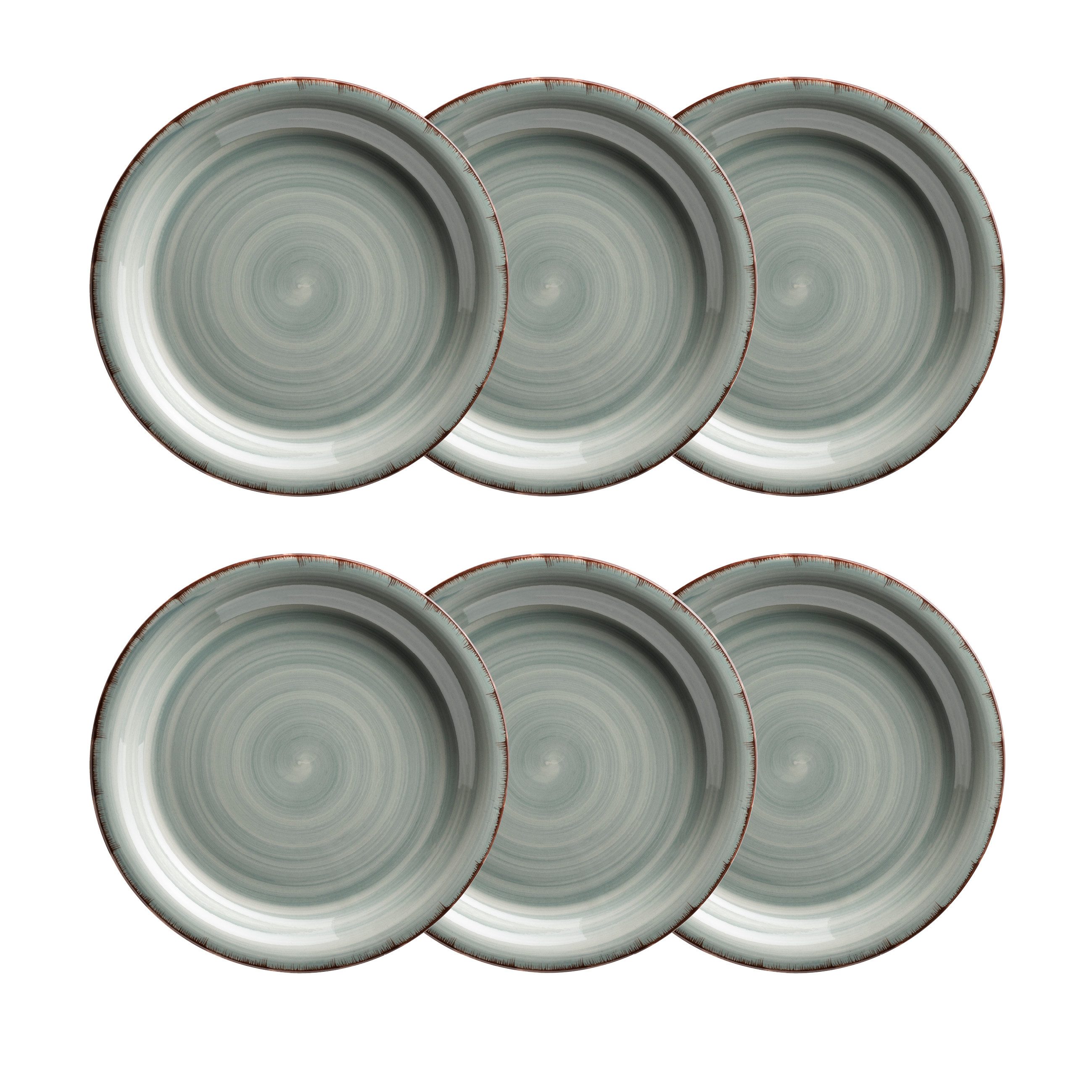Dieses modern-rustikale Geschirr-Set besteht aus 6 Desserttellern
