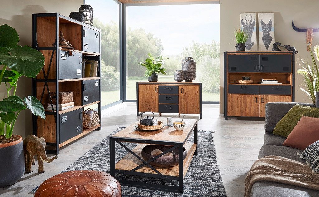Mit unserem TV-Element aus der Montreux Serie holst du dir ein beeindruckendes Stück Industrial-Stil in dein Wohnzimmer. Das Element besteht aus massivem, gebürstetem Akazienholz und einem schwarz lackierten Metallgestell, das perfekt mit dem Holz harmoniert. Akazienholz ist ein nachwachsender Rohstoff und steht für seine natürliche Schönheit und Langlebigkeit.