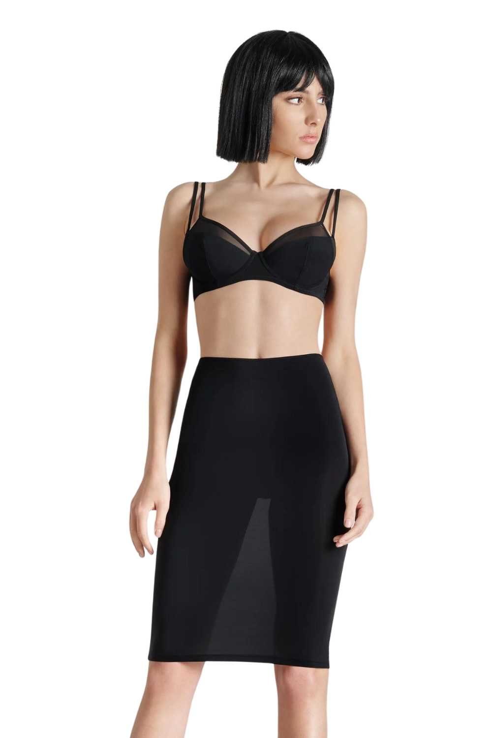 Das zeitlos-verführerische Design vereint ein raffiniertes Spiel mit Transparenz und Verhüllung. Der elastische Bund an der Taille sorgt für einen perfekten Sitz, während ein verstellbares und abnehmbares Gummiband am Rücken eine unerwartete Note verleiht, je nach Moment oder Absicht interpretierbar. Der Bleistiftrock mit halbtransparenter Vorderseite aus Mikrofaser und transparenter Tüll Rückseite lädt zum genaueren hinschauen ein und enthüllt den Po in einem verführerisch-sinnlichen Wechselspiel edler Materialien. Ein abnehmbares, verstellbares Elastikband sorgt für eine raffinierte Akzentuierung Deiner Rundungen.
