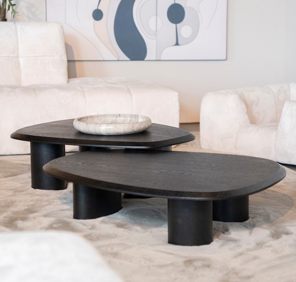 Entdecken Sie den einzigartigen Charme des Couchtischs Ludger ein Meisterwerk, das den japanischen Stil verkörpert. Der aus hochwertigem MDF gefertigte und in stilvollem Schwarz gehaltene Couchtisch besticht nicht nur durch seine Ästhetik, sondern auch durch seine Langlebigkeit und Funktionalität. Die Kieselsteinform verleiht Ihrem Wohnbereich ein verspieltes und modernes Element, während der schwarze Sockel einen harmonischen Look erzeugt. Dieser Couchtisch ist die perfekte Ergänzung für jedes Interieur, das eine Mischung aus Modernität und natürlicher Schlichtheit anstrebt. Material: Der Couchtisch ist vollständig aus MDF gefertigt, sowohl die Tischplatte als auch das Untergestell, wodurch ein einheitliches und sauberes Aussehen gewährleistet wird. Einzigartiges Design in Kieselsteinform Elegantes schwarzes Finish Japandi-Stil, der Modernität mit natürlicher Schlichtheit verbindet