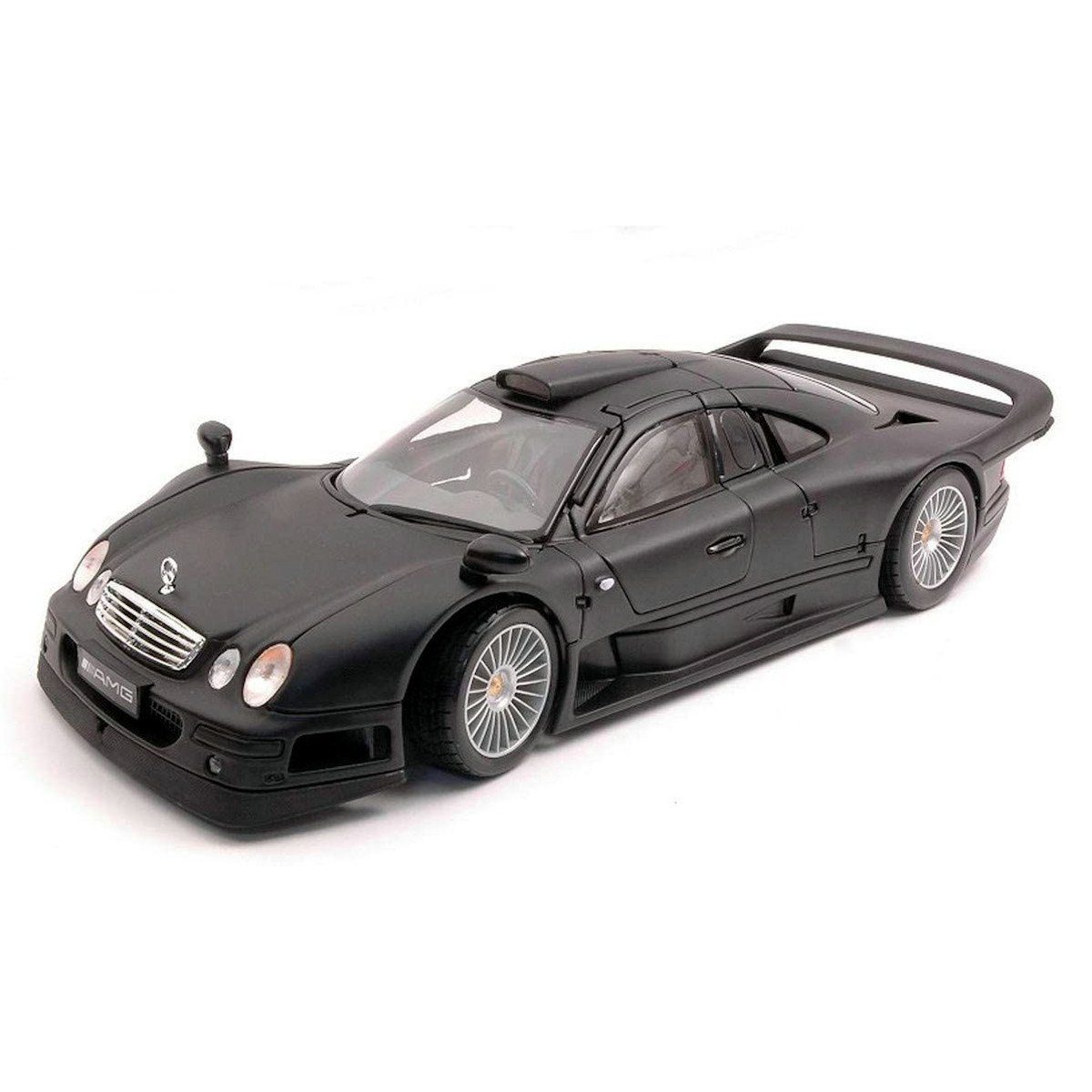 Entdecke die Eleganz und die beeindruckende Präsenz des legendären Mercedes CLK GTR in einer makellosen, schwarzen Ausführung! Dieses detailgetreue Modell im Maßstab 1:18 bringt die kraftvolle Ästhetik dieses Rennwagens direkt in dein Zuhause.