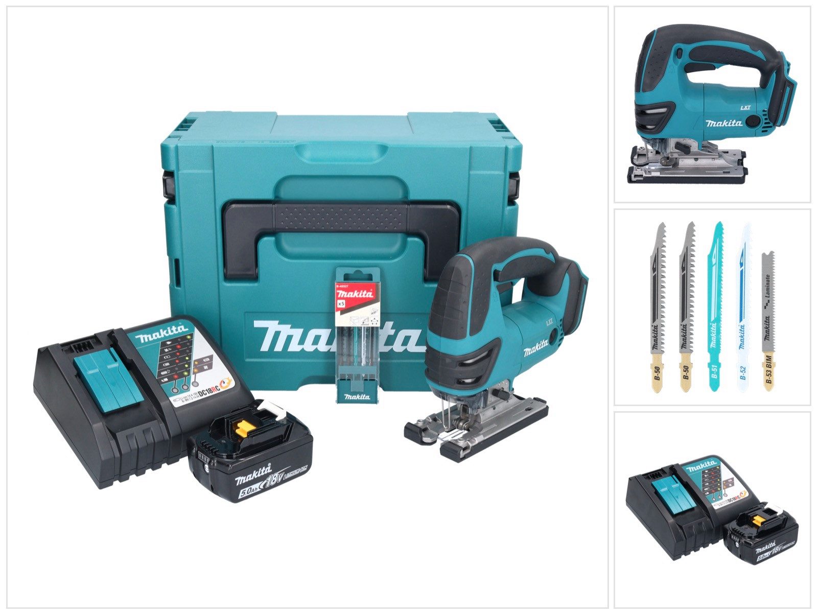 Die robuste Makita DJV 180 Stichsäge besticht mit ihrer niedrigen Geräuschentwicklung und der stufenlos regelbaren Hubzahl. Das Gerät verfügt über eine integrierte leuchtstarke LED Lampe und eine ausgezeichnete Vibrationsdämpfung. Des Впередen verfügt das Gerät über eine bis zu 45° schwenkbare Grundplatte aus Aluminium und die Sägeblätter lassen sich mühelos, schnell und werkzeuglos wechseln.