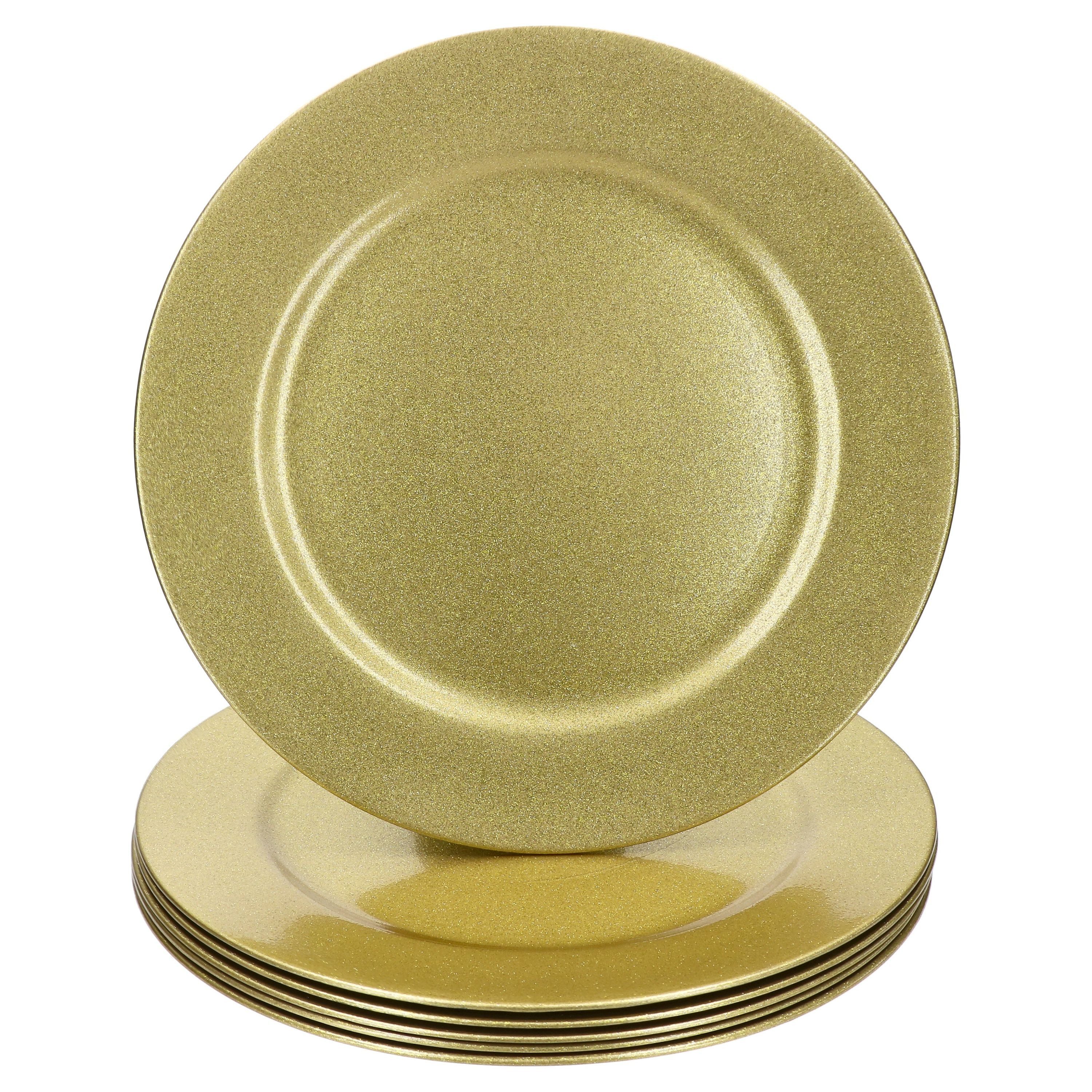 Diese glitzernden Platzteller in Gold eignen sich hervorragend als Unterlage oder als dekoratives Accessoire auf jedem festlich gedeckten Tisch.