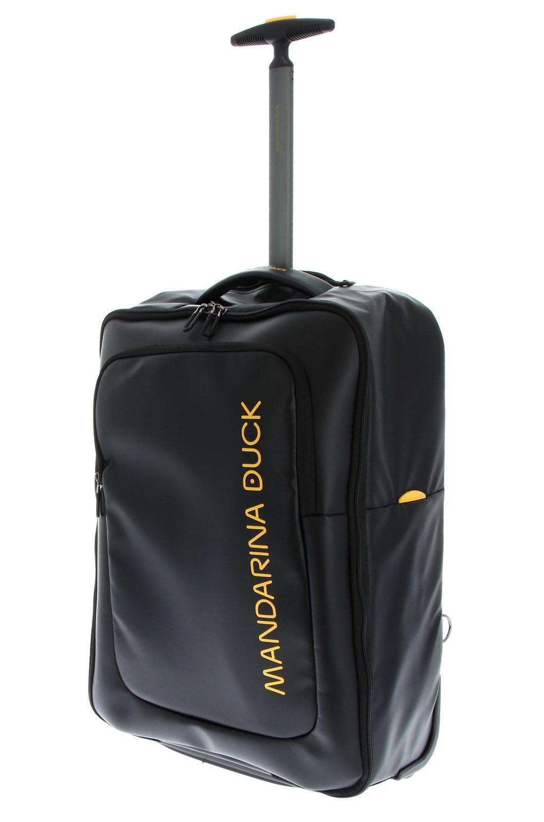 Dieser neue MANDARINA DUCK Trolley macht jeden Kurztrip zu einem Vergnügen. Im Inneren kommen Ihre Dinge übersichtlich und geordnet unter. Der MANDARINA DUCK Eco Coated Trolley Backpack besitzt eine großzügige Fächeraufteilung, in der Ihre Utensilien übersichtlich unterkommen. Bequem auf den leisen Rollen hinterhergezogen oder mit den Schultergurten auf den Rücken geschnallt, kommen Sie flexibel von A nach B. Ein echter Allrounder der Eco Coated Trolley Backpack.