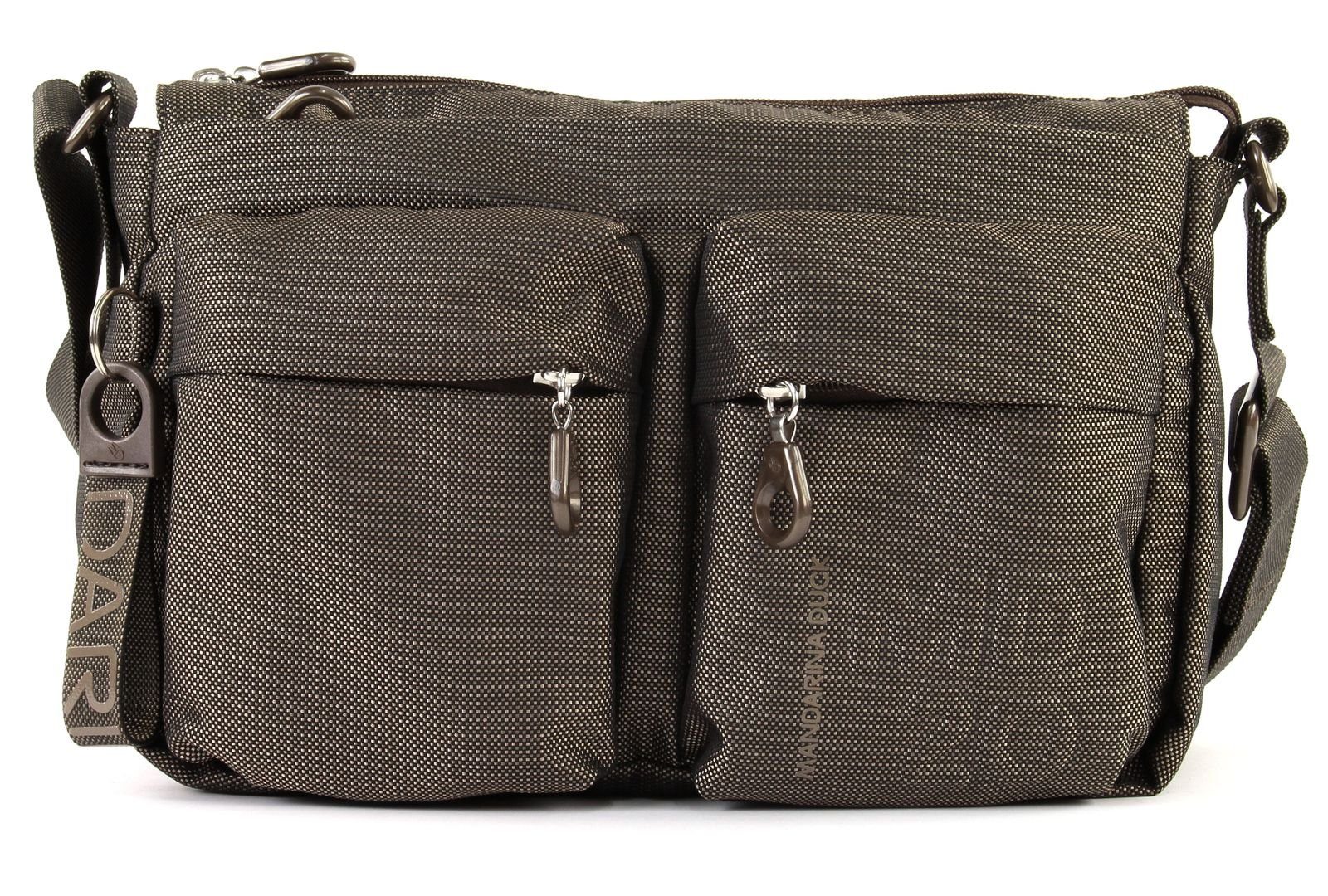 Entdecken Sie die stilvolle Mandarina Duck MD 20 Umhängetasche in elegantem Schwarz, die nicht nur durch ihr modernes Design besticht, sondern auch durch ihre durchdachte Funktionalität. Hergestellt aus dem hochwertigen Mitrix Material, bietet diese Tasche die perfekte Kombination aus Stil und Langlebigkeit. Die Umhängetasche überzeugt mit einem großzügigen Hauptfach, das sicher mit einem Reißverschluss verschlossen wird. Sie ist ideal für den Alltag und sorgt dafür, dass Ihre Essentials stets griffbereit sind. * Praktische 2 Fächer auf der Vorderseite mit sicherem Reißverschluss * Ein längenverstellbarer Schulterriemen für individuellen Tragekomfort * Elegantes Mandarina Duck Logo, das dezent eingearbeitet ist Die Innenausstattung der Tasche bietet ausreichend Platz für Ihre persönlichen Gegenstände, während die Außentaschen schnellen Zugriff auf häufig benötigte Dinge ermöglichen. Diese Umhängetasche ist nicht nur ein modisches Accessoire, sondern auch ein funktionales Must-Have für jede modebewusste Frau. Mit einem Gewicht von nur 0,40 Kilogramm ist sie leicht und angenehm zu tragen, sodass Sie sie problemlos den ganzen Tag über nutzen können. Gönnen Sie sich diese elegante Umhängetasche und setzen Sie ein Statement in Sachen Stil und Funktionalität.